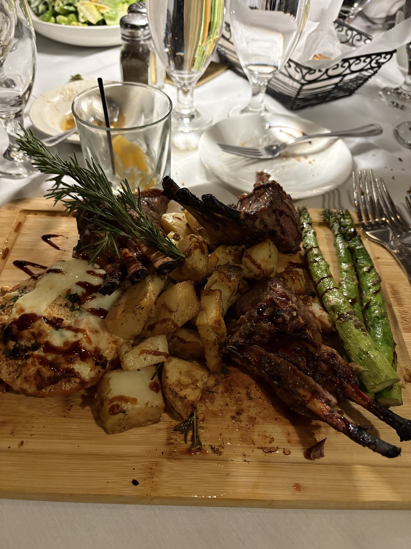 First off, let's talk about the main event – the entrees. Oh. My. Goodness. My own tomahawk porkchop arrived looking like a prehistoric club fit for a very discerning caveman. And the taste? Grilled to utter perfection. Seriously, each bite was a juicy, smoky symphony that had me doing a little happy dance in my seat. My son, a discerning young carnivore, declared his contrafilletto di manzo cooked precisely to his desired temp – a victory in any parent's book! My lovely wife opted for the short rib ravioli, which she thoroughly enjoyed. Now, just a little chef's note (because we're all friends here, right?): perhaps a more elegant presentation, maybe elevating those delectable little pockets of goodness, or a swap to a vibrant sage butter sauce instead of the gravy could really take this dish to the next level. Just a thought!