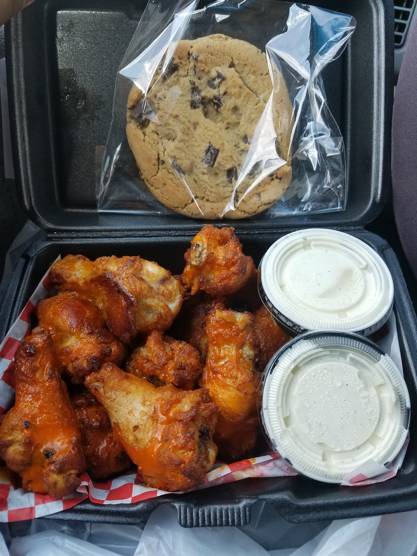 Read moreIf you want fresh, hot, and delicious hot wings then mark this business as your go to place. Their buffalo wings are freaking delicious! They have plenty of meat on them and the sauce is just soooooo good! The ranch and blue cheese dressings are sunshine in a container. You can tell that they're made with fresh ingredients. So rich so creamy. Ranch taste like ranch. I say this because it's so hard to find authentic ranch with a good ranchy flavor if that makes sense. The chocolate chip cookie is very dense and filling. Not overly sweet. I love the chunks of chocolate that's in every bite. The lady that took my order was so nice and helpful. She helped me get my food to my vehicle because I we carrying a baby. They have some of the nicest people at this location. It's the only one I...