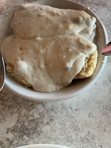 We had breakfast here for the first time on Sunday, 5 March. We waited about 20 minutes for a table, but I personally think it was worth the wait. When we were seated we were given a good amount of time to review the menu and decide what we wanted, their menu isnât huge, but they have a lot of great things to offer. It was hard deciding if we wanted breakfast or lunch. Our waitress was friendly and checked on us and the surrounding tables a good amount of times even though it was real busy. We appreciated it. The hostesses were friendly, and prompt with getting people checked in and seated as well. Once we ordered our food, we maybe waited 5 minutes for everything to come out, and everything came out hot and so fresh looking. The biscuits and gravy are absolutely delicious and the portions for everything seemed to be huge and so filling. We really enjoyed our food and would definitely come back again, everything had great flavor and was plated really nicely! To top it all off the restaurant was clean and seemed to be run really efficiently and they are very military friendly here, we were asked if we were military and given a military discount which we really appreciated as well, we look forward to coming back here again sometime soon. Thank you for the terrific food and service and for making me and my husbandâs Sunday breakfast date...