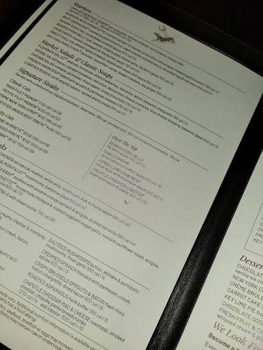 VERY PRICEY MENU, EVERYTHING IS ALA CARTE Since Fleming's arrived in Lincolnshire we have dined at the restaurant usually for special occasions. The prices for their entrees are VERY high and the side dishes/salads are all ala carte. I received a gift card for the restaurant and decided to re-visit the restaurant after a movie during one of Chicago's famous snow storms. We were surprised that, several other people had braved the snow and we were not the only ones in the restaurant. It was probably 25% full. We were greeted by our waiter and given the Wine List on a tablet. We declined any alcoholic drinks due to the severe weather conditions. Well... I think that set the "tone" for the night. Our last experience at the restaurant had left us disappointed; basically our waiter had ignored us and we had to ask for the bill, not something one does in a $$$$ restaurant. So, we kinda knew what to expect. The prices of their entrees, especially their steaks have dramatically increased since our last visit, $55 for a steak. WOW! As an appetizer, I had the french onion soup ($14.50), one of my favs. However, the cheese on top was slightly burnt so, the soup absorbed the burnt taste. We both ordered the beef short ribs with mashed potatoes. My ribs were a little tough but, my hubby said his were very tender. Before, we had finished our entree, the waiter approached us and asked if we were ready for dessert? Um no, let us finish our entree. It turns out my gift card had more $$ than I thought so, we did end up ordering the chocolate pecan pie to go. The next day I measured the width of the pecan pie slice, less than 2 1/2 inches wide for $14.50 per slice! I did the math: 8 slices of pie at $14.50 = $116 per pie! What? The ambience of the steak house is quiet and good for conversation. However, this was probably our last time. We simply cannot afford $100 per person, NOT including drinks. P.S. There are no prices online...