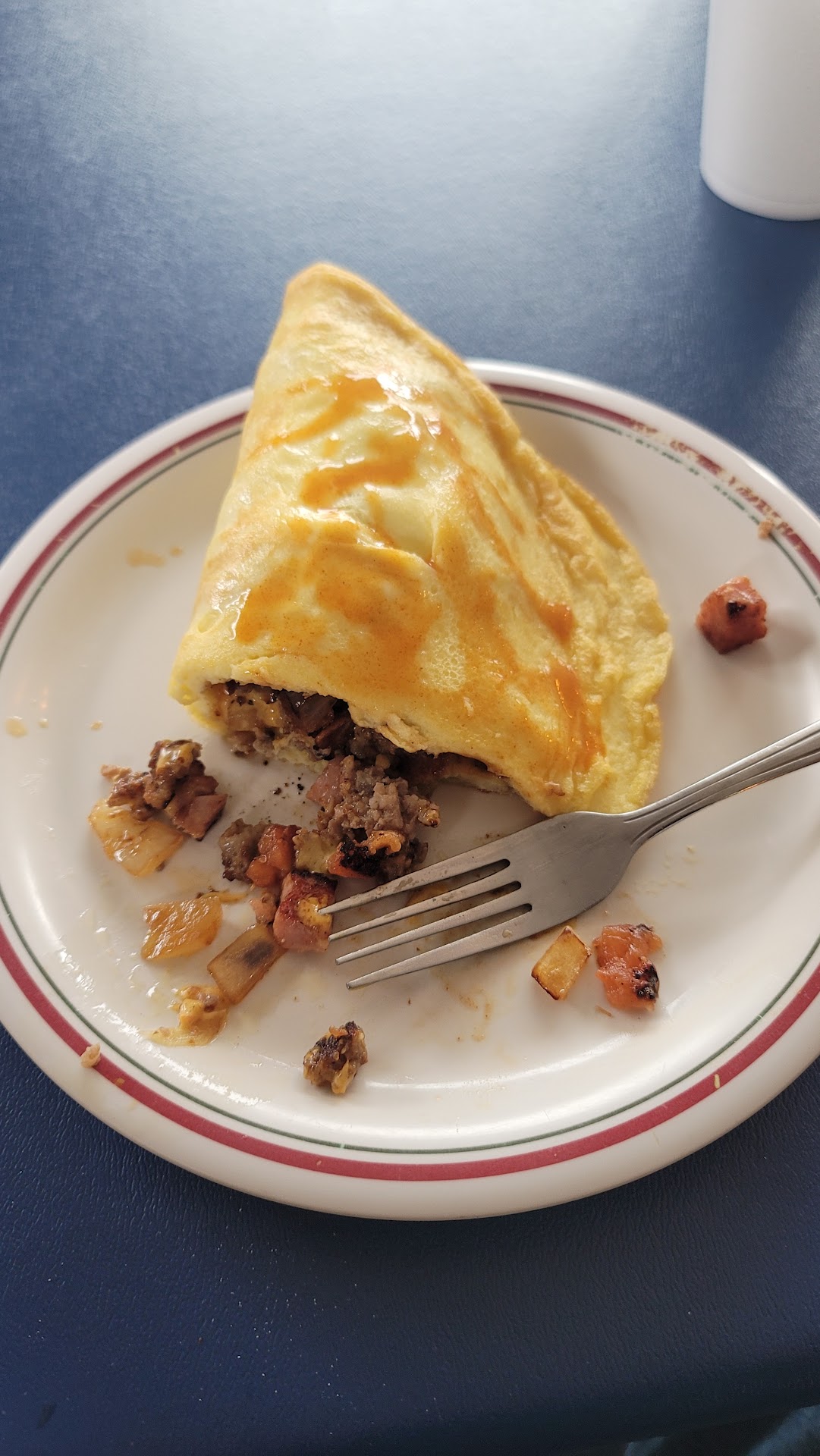 While there, one of the leaky ceiling tiles (there were a good few of them) fell to the floor. We had to move from our table because the ceiling tile we were sitting under looked like it too would cave in soon. If the owners can’t take maintain their restaurant’s ceiling and who knows what else, they are putting the safety of patrons at risk. The only reason I left a 2-star review is because of a wonderful encounter with a local man who is also one of the restaurant’s loyal patrons. He’s too kind to continue frequenting this place - although I get that there are no other options in this town for breakfast. I do hope the owners turn things around because it would be a shame for this restaurant that has been in this town since 1945 to close...