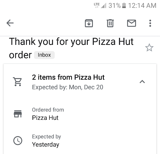 Read moreSo, the last time I placed a Pizza Hut order online, we ordered from the Pizza Hut in Rome & we usually order from Lindale. I didn't think about changing the pickup location. So, I get to Lindale Pizza Hut & the lady politely told me she had no orders. She was kind enough to rapidly take my order & even had it ready a few minutes before the promised time. We've been patrons of Lindale Pizza Hut since it opened. My orders have always been correct. Everyone has always been super nice. The only thing I wish is that they still delivered to my address. (We have a Lindale address but we live on the HWY 27 side of Booze Mountain.) As for our orders, we're usually pretty basic with nothing too extreme. My young daughter of course has to have an extra extra cheese pizza, light on the sauce, which they always seem to accommodate. She's also crazy about the Hershey brownie. My husband occasionally gets wings, which he gobbles right up. I don't have any complaints...