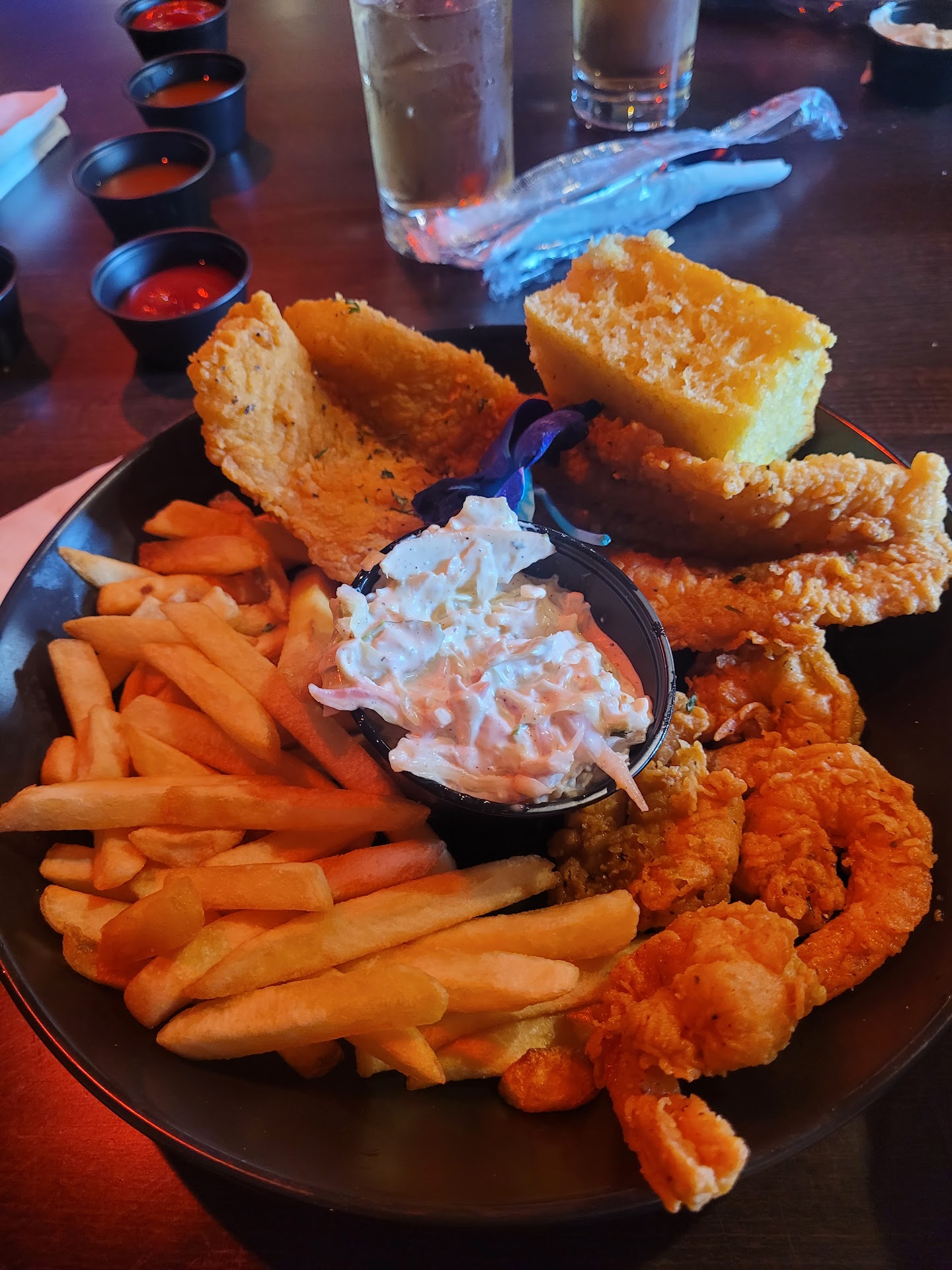 Got there around 7:15 pm and the place was empty, it felt like a bar setting out of the 90's. Red lighting & long dark wooden tables , nothing upscale about this place.
