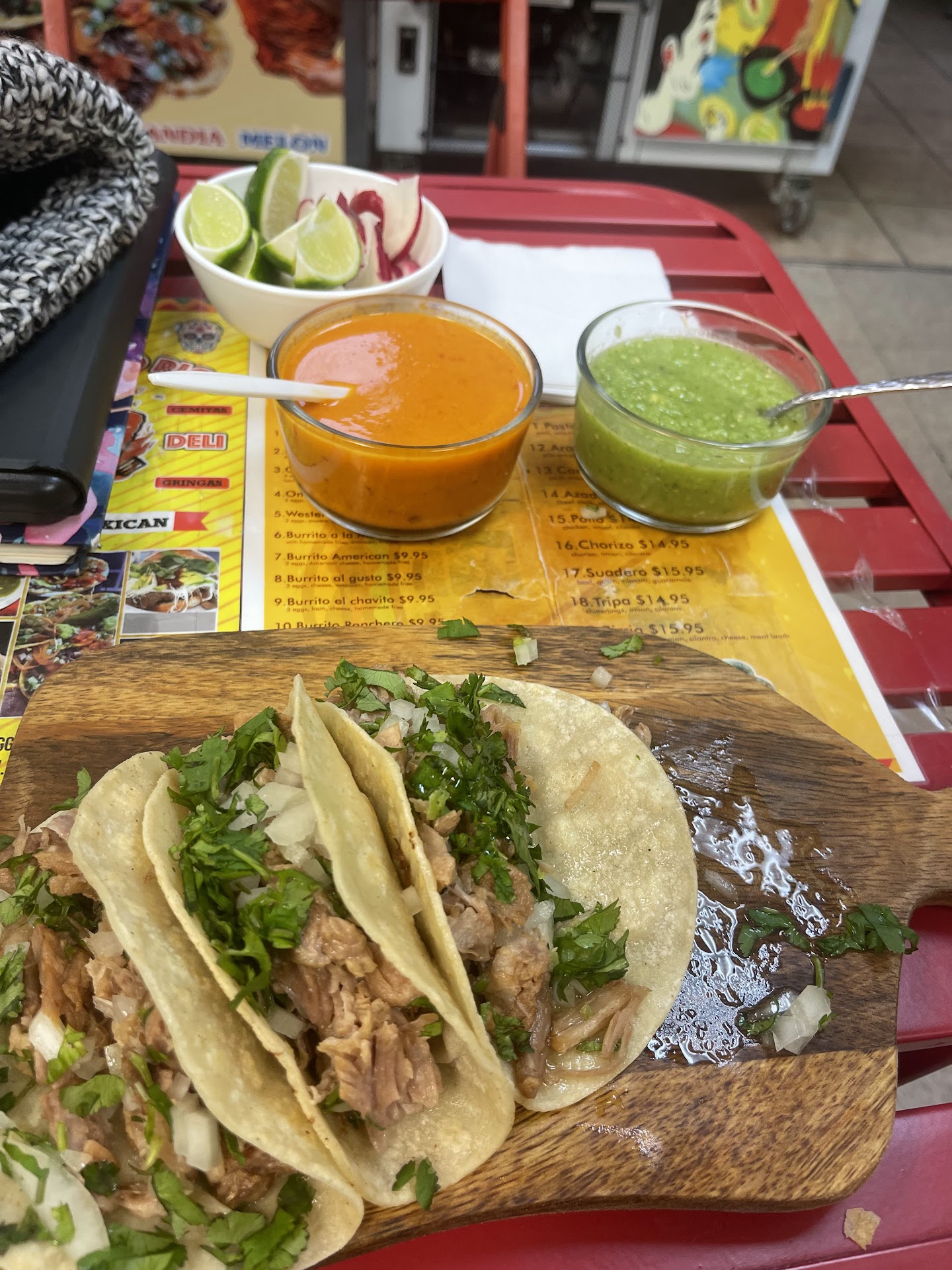 Read moreTHIS PLACE IS IN THE BACK OF A POLISH DELI. it must of have been the old deli' kitchen. 2 little tables is you want sit. It is on doorsash if you want to order. The food was made fresh. The service was great. They have street corn. OMG delicious. I had the taco al pastor it was amazing 👏 we also order flautas. They taste home made. One of the best salsa verde I have ever had. The red salsa was burning deliciously. The agua de Horchata was good too but I like the agua de jicama better. The toco were so full of meat that I had to 2 out of one. The order was about 15 dollars. Inwill go back and try everything on the menue. Having the...