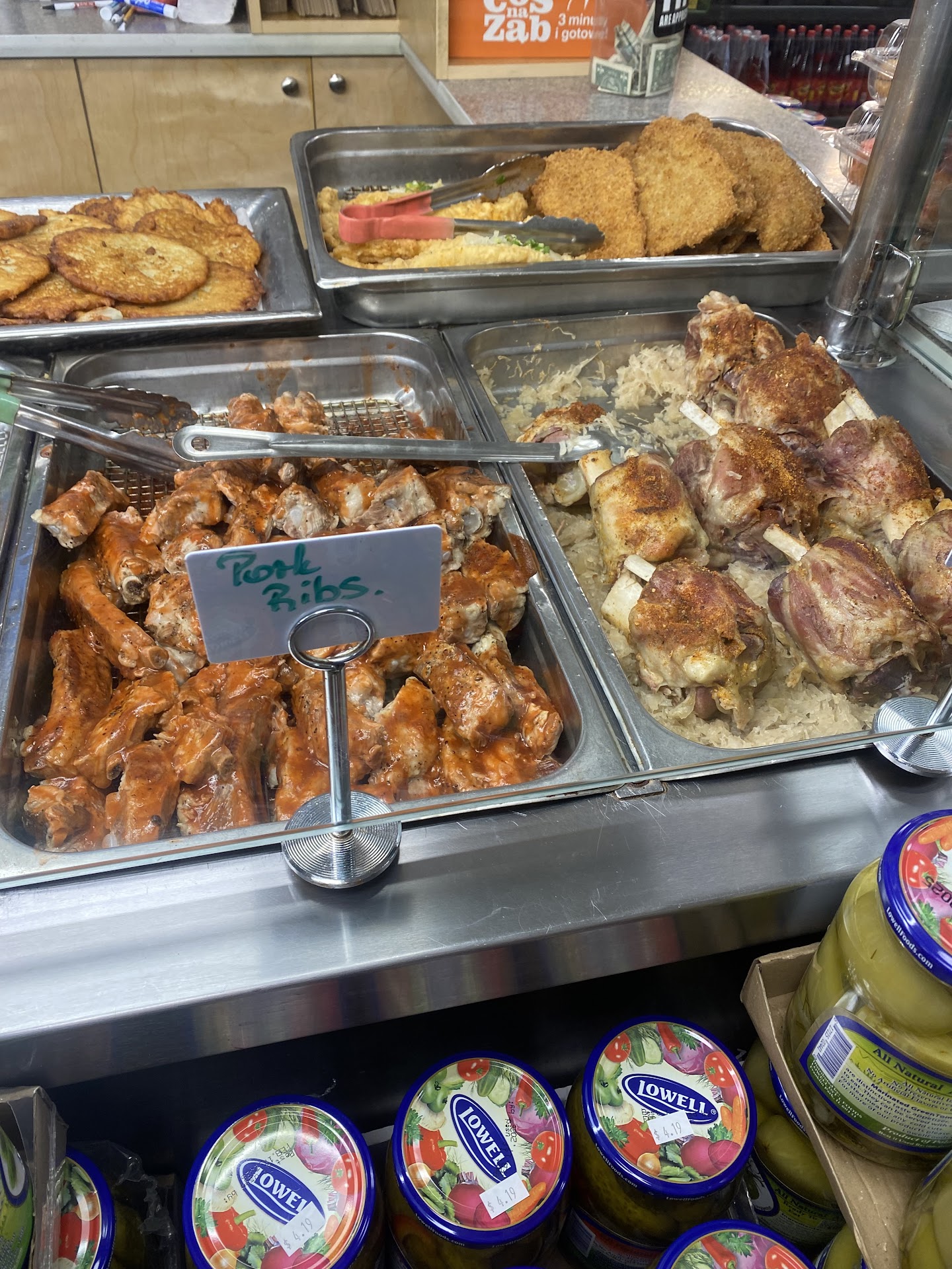 Upon entering, it was a bit overwhelming as the cozy, clean, cool interior features a grocery store with everything Polish, like canned sauerkraut, mustards, jellies, etc., a deli, and hot food to go.