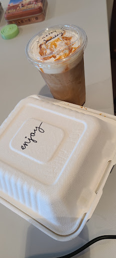 First impressions: it's a cozy atmosphere. Contrary to a previous review that described it as having a "corporate feel," I found it quite the opposite. The barista was very friendly, and their menu caters to everyone with many unique options. I was a bit overwhelmed by the numerous choices, so I asked the barista to make me their favorite drink.
