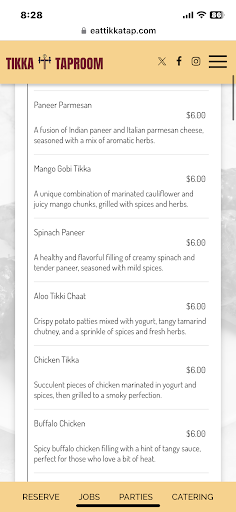 Read moreTikka Taproom is a hidden gem that left us absolutely impressed! This place has a perfect blend of vibrant flavors and a lively atmosphere, making every visit a delightful experience. Their Indian fusion menu is a true culinary adventure, offering a variety of dishes and 10 unique sauces that range from mild and creamy to boldly spicy, catering to all taste preferences.