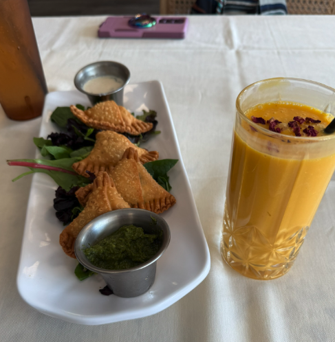 We started with the Aloo Tikki Chaat, and it quickly became my favorite dish of the night! The crispy texture paired with the flavorful chutneys created the perfect bite. The Mango Gobi Empanadas were a delicious twist on traditional empanadas, combining global inspiration with Indian flair. We also tried the Saag Paneer, which was rich and creamy, perfectly balanced with their soft, warm Garlic Naan.
