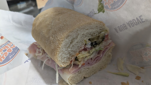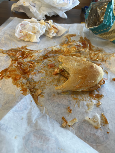 Read moreI was really disappointed today, when usually I can count on Jersey Mike's to be fairly quick. Today, I ordered two sandwiches one that is cold and one that is hot. The cold one was prepared right away, but the hot one took over 15 minutes while my cold one was getting warm. I watched while the cook made other online or telephone orders and put those to be cooked before ours even though we ordered first. When I repeatedly asked about our sandwich, they kept saying it would be one more minute but it ended up being over 15. The last straw was when they said that this sandwich will be made when the rest of the sandwiches on the grill would be made, even though that represented the second batch of phone or online orders that came after mine. When I explained that I was in a rush and was running late for an appointment, the cashier in a rude way said "we're doing the best we can." And when the sandwich was done she literally threw it at me. Although the hot sandwich was fine, the cold sandwich was too warm by the time the hot sandwich was done. Really disappointed with customer service and the lack of attention and care to paying customers that are there ready and willing to eat but who must wait for other online and phone orders. Literally every table in the restaurant was filthy. The floor was sticky. And the front door was filled with handprints as though it had not been cleaned in days. Don't even ask about the bathrooms! Not sure if I can ever go to this...