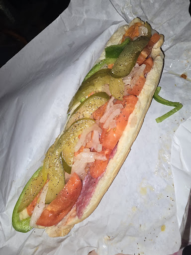 I ordered the Genoa as in Genoa salami and received not Genoa salami the footlong sub was not cut in half and because the vegetables were cut so large for instance a pickle spear that is 4 inches long or a wedge of tomato that literally is the size of an orange wedge or a middle slice cut in half it was impossible to even attempt to rip the sandwich in half and quite unmanageable to attempt to eat the entire foot long skinny sub in addition I asked for salt pepper oil and vinegar and received a bath of oil between the liquid from the pickles and the oil the whole sub roll with saturated and deteriorating within moments I cannot stress enough that this somewhat good sized sub was 99.9% pickles and tomatoes but I don't want to forget to mention the fact that there was so much white onion on my sub that I was in tears and had to pick up almost all of the white onions which probably should have been Vidalia or sweet onions if these people knew how to make in Italian I cannot stress enough how much this sandwich contains literally two very small pieces of cheese and 3 slices of not Genoa salami with an overwhelming amount of the ingredients coming from pickles and tomatoes there wasn't even any lettuce on the Italian did I forget to mention the fact that the vegetables or mostly tomatoes and pickles but also peppers were cut in such a way as though they didn't realize that I'm not Andre the Giant aside from the fact that they forgot to cut my sub in half drenched it with way too much oil cut the vegetables way too large but an overwhelmingly disproportionate amount of pickles and tomatoes well mostly pickles it was unbearably pickle-y, it was almost as if it was just a pickle sub with a garnish of meat and cheese and if you've seen their sub rolls they are not that spacious they may be long but they are not...
