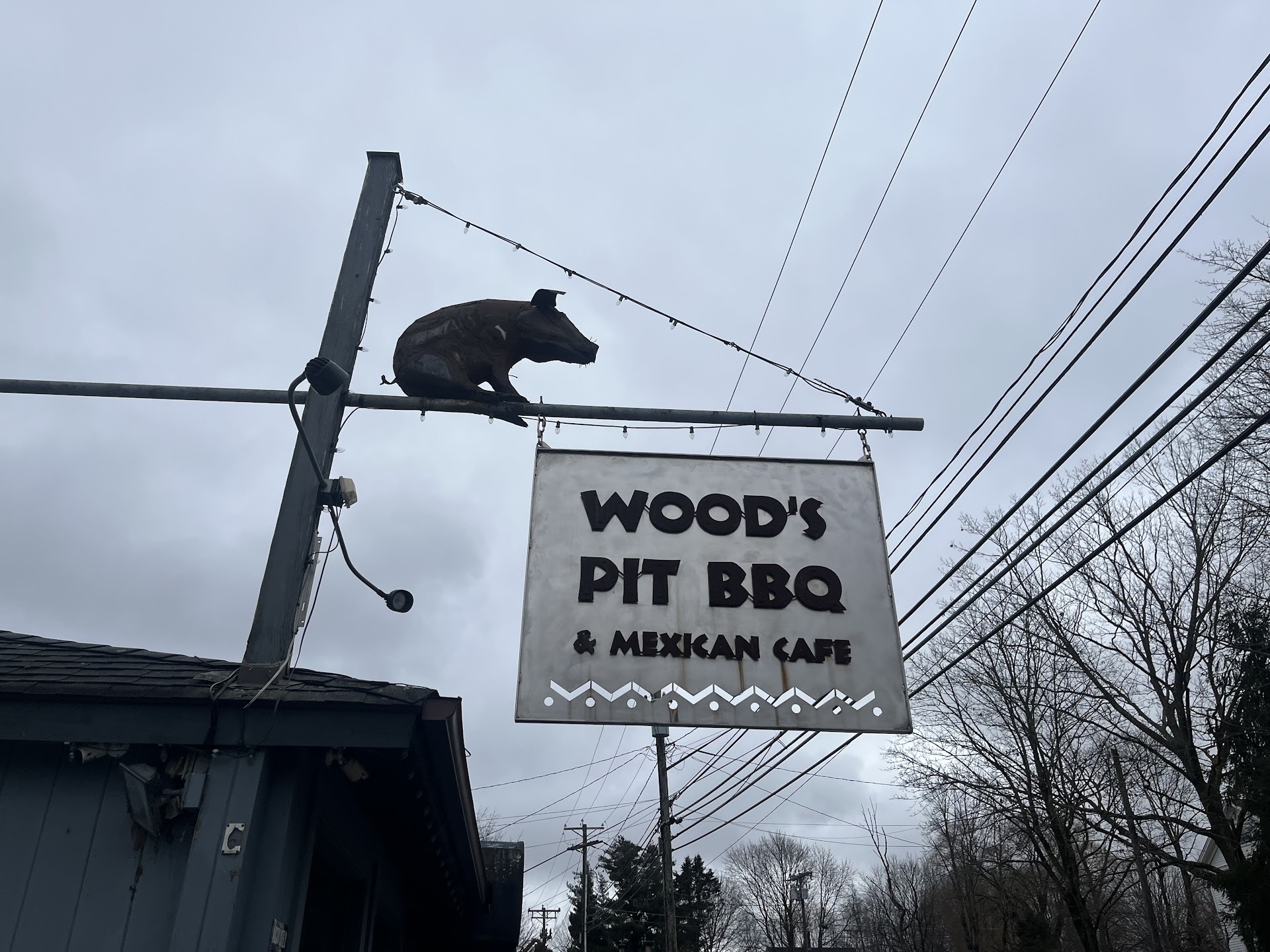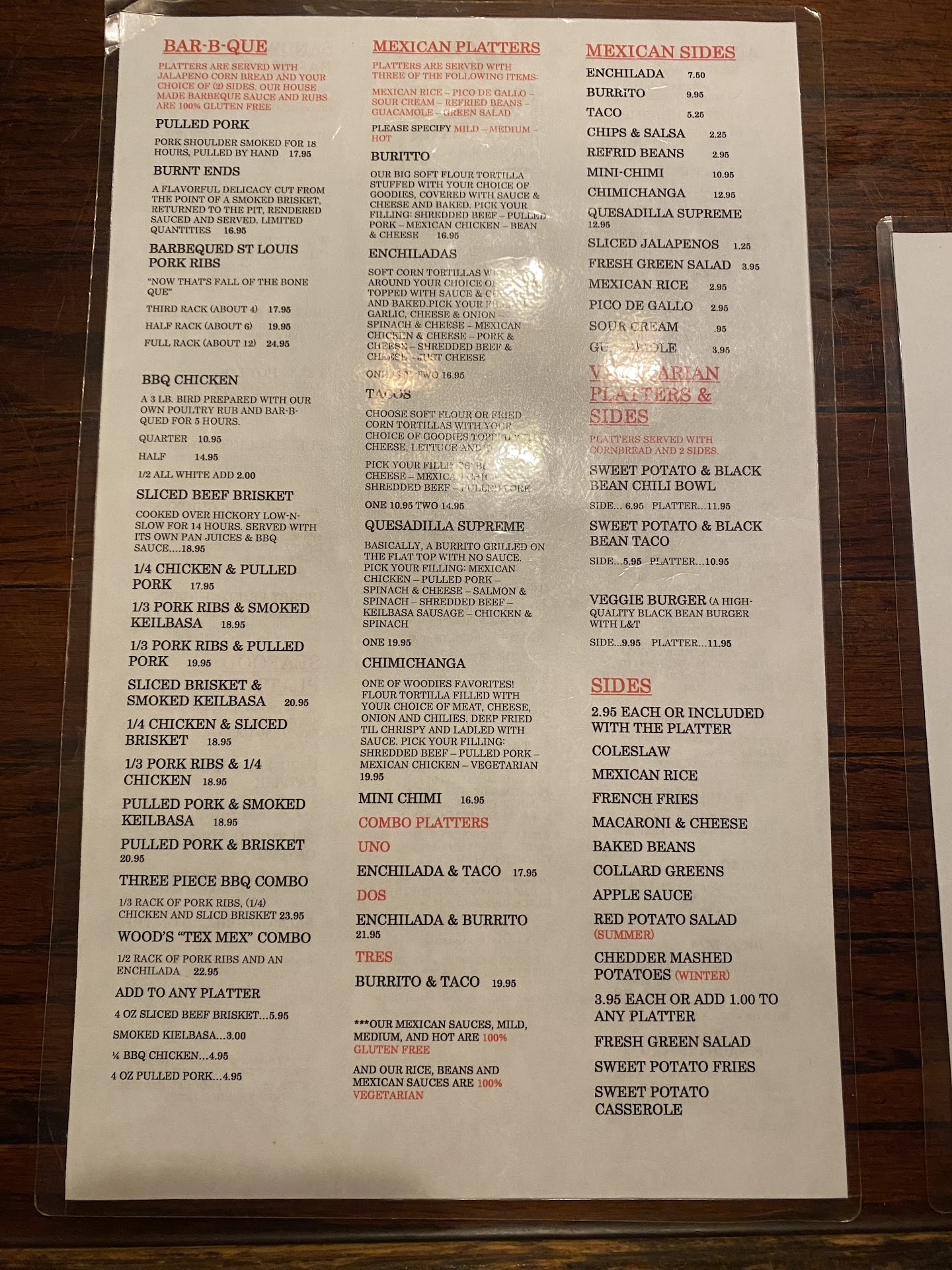 Read moreThis place has gone down hill A LOT in the last few years, I used to get food here regularly a few years ago. First off don't trust their website, I was absolutely shocked when we got there to find the menu prices are at least 50% higher than stated on the website. They also gave us the dinner menu (higher prices) during lunch hours and we had to ask for the lunch menu. We ordered the pulled pork and pulled chicken sandwiches with sweet potato fries. The pulled pork sandwich was very light on the meat and dry/chewy, it needed a lot of sauce to eat. The sweet potato fries were absolutely disgusting, undercooked, gross black and brown spots and they didn't even clean/peel the potatoes and imagine my shock when we were charged an additional dollar for the sweet potato fries with each meal. The waitress didn't even warn us and it didn't say anything about an upcharge on the menu. They also charged 3.50 for a fountain soda. So for 2 people to have lunch it ended up costing 45+ dollars with tip. On top of all that I had serious stomach problems for the rest of the day after eating the food. The place is dark, filthy and the place is falling apart. They should be ashamed of the food they serve here. Absolutely abysmal...