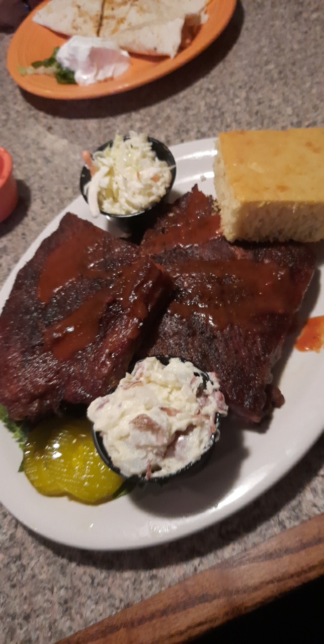 Read moreWe were so excited to eat here as many have said it’s so good. Disappointing is being nice about it. All the smoked meats we had ( ribs, brisket, chicken, pulled pork and Kabasa) had ZERO smoke flavor and no classic smoke ring or bark and were all dry! The 18hr smoked brisket seemed like it was just corn beef out of a slow cooker . The pulled pork tacos were so watery the shells turned to mush with lukewarm warm refried beans. Even the salsa was just canned tomatoes with no onions/garlic or any flavor. The jalapeño poppers were you run of the mill any grocery store, frozen generic poppers. The cornbread with jalapeño had no peppers in it and was definitely left out too long and dry out. The only thing that was somewhat good was the pork belly appetizer drowned in sauce . The woman’s bathroom was FILTHY with sticky floors and soap streaming into the garbage can below. The nasty wall to wall carpet is definitely due to be changed throughout the place. The staff was friendly but that was the only good we could point out. What a shame and not worth...