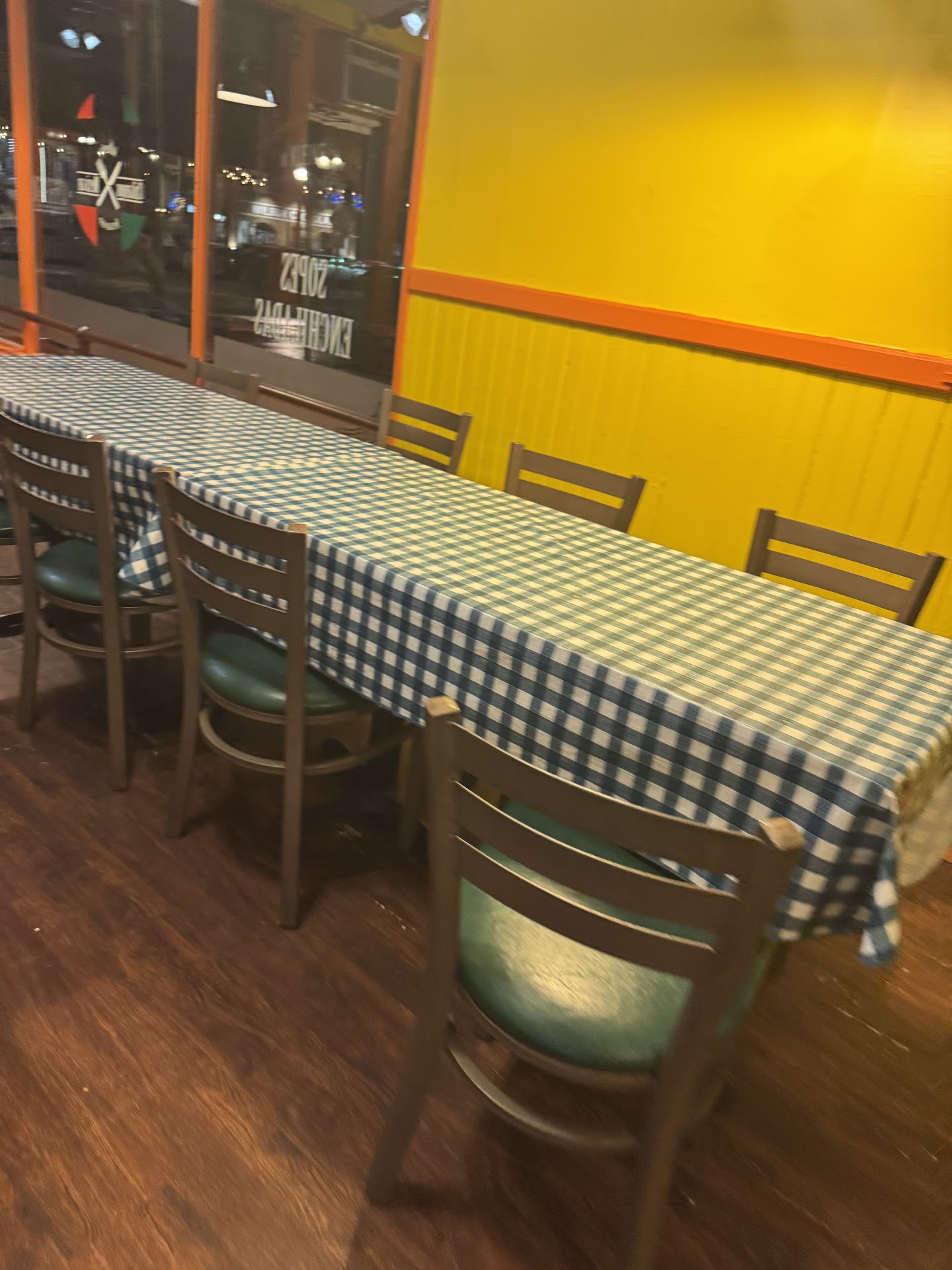 The atmosphere is really nice is really colorful. They play Hispanic music is really nice like the Hispanic music that youâll hear at Spanish parties and then when you get seated next to the window itâs pretty view.