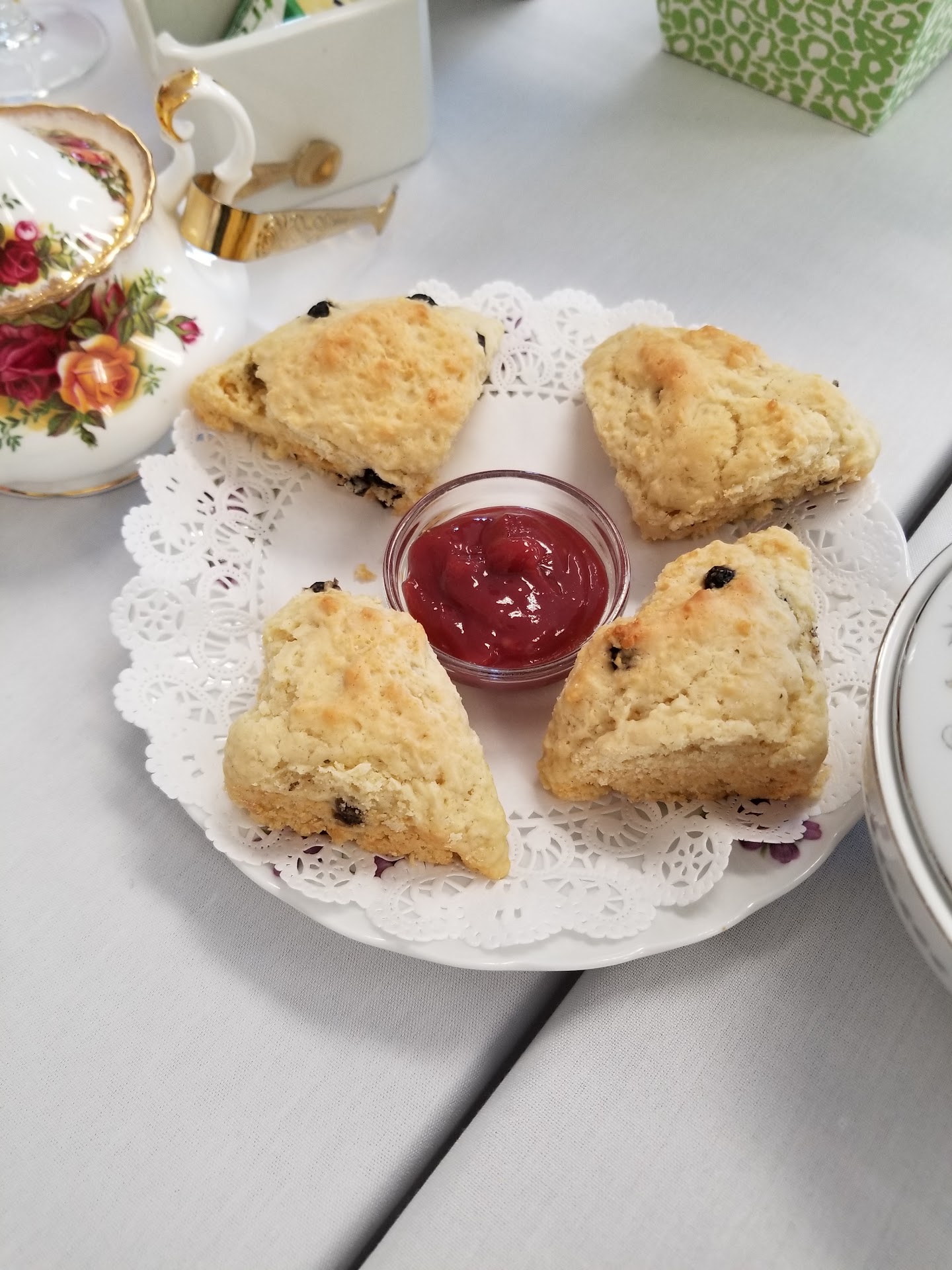 The waitress lacked any personality and took our orders one table at a time. (We had 3 tables.) That led to her bringing out our food one table at a time. We were constantly interrupted as we tried to play games and get to know one another because of her style. Some of us were eating, some of us weren't. It was so awkward. We also had a gluten-free guest and when we told the waitress she seemed surprised (they were aware of this prior to getting there), she promptly picked up our plate of scones and took it to the back only to bring the gluten-free one back on the SAME PLATE. Completely cross-contaminated it. We tried to explain and she just didn't get it. Oh, and you're charged extra for GF ... I get that ... but only if served properly.