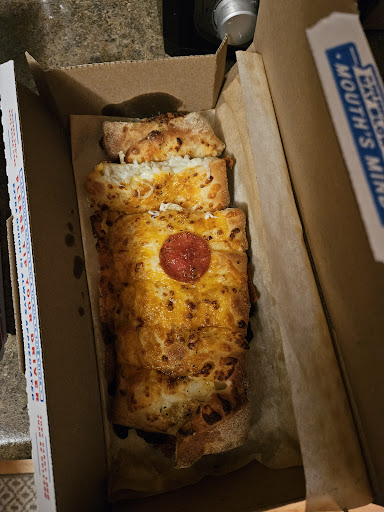 The pizza tasted like it had been sitting in the window of a gas station deli for about 8 hours. While it was only slightly warm the edges of the pizza including the slices were already hard and crusty so it had clearly been sliced quite some time before we ever even ordered our pizza. My guess is they had a pepperoni pizza that didn't get picked up or didn't get delivered and when we put our order in they decided to throw four pieces of dried up Canadian bacon and four green peppers on top of it and call it good. The cinnamon sticks were hard as a rock brown and dried up with only the slightest dried up drizzle of cinnamon butter on top of them.