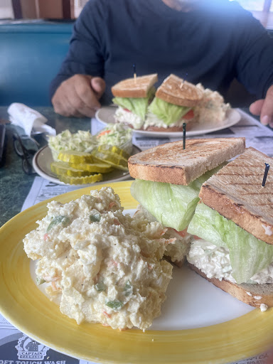 We had THE BEST lunch today! We both got manahattan clam chowder. It was delicious, hot and obviously homemade! My husband and I both ordered chicken salad sandwiches, on rye toast with potato salad. It also comes with pickles and coleslaw. You can get fries or homemade chips in place of the potato salad. The potato salad was homemade with crunchy celery. It was DELICIOUS! The server told us they make the chicken salad fresh for each order and you can definitely tell! You can see in the picture how big the sandwich and how big the serving of potato salad is! The quality of the food is superior and sooo affordable! Can't wait to come back and order this again! They also have a freezer with frozen meals to go. We had tried the stuffed cabbage rolls with mashed potatoes. Delicious. Also another time we had the stuffed peppers with mashed potatoes! Another delicious meal! It needs to be a permanent addition to the menu! Our server was great, even though she's a Cowboys fan! lol! Also the bussers next a huge shout out! They are always so friendly and attentive. Great place, great food and great...