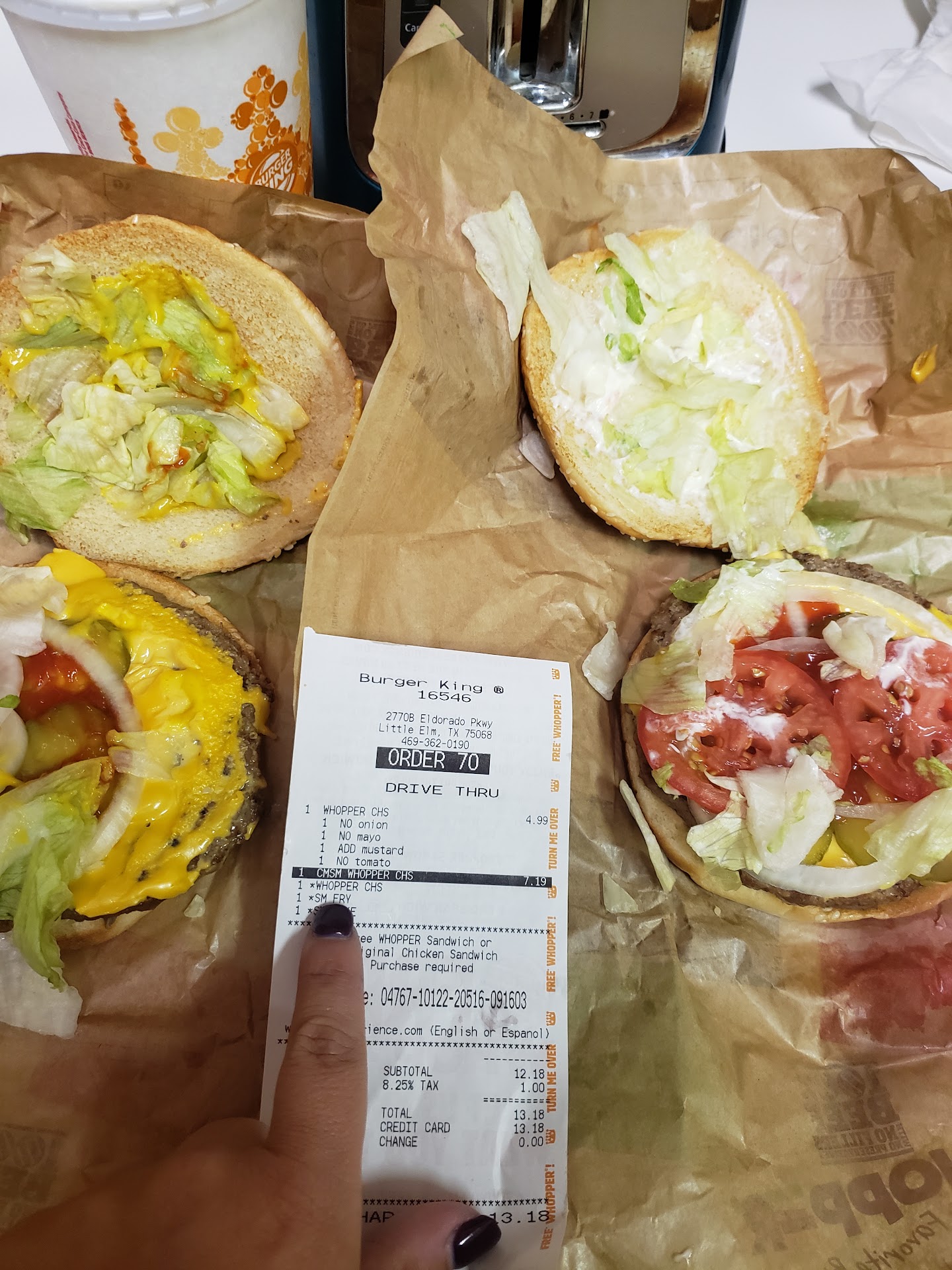 Read moreThis Burger King is absolutely an insult to the whole brand! I don't know if this is a franchise, but the food quality is absolutely a joke! Oh yea, this is before covid-19 even hit the world, so no excuses!!! The funny thing is I went to literally 4 different Burger Kings over the last 6 months and they were absolutely on par! They tasted Charbroiled, juicy, toastex warm bun and oh yea lots of veggies! This location no matterwhat time you go the burgees come out in like 30 seconds, HEY I know fast is great right....? No WAY, No matter when you go the burgers tasted ALWAYS the same.... The buns are cold, the meat is dry, like a 1/3 of the veggies you get at ALL the other locations, and A DROP of sauce...! Im not joking or Exaggerating by any means! The burgees tasted old and stale, I worked in the food industry for a Longgg time as a leadership role the burgers tasted like they premade them 45 minutes ago and just wrapped them up and put them in the microwave to eat them up! IIts sad when you will drive to the Colony or frisco locations to get REAL Burger King experience and food! I'm serious tjis place SUCKS no matter how many different chances I have gave it or heard the exact same feedback from MANY other guest in Little Elm! I just think Burger King corporate should secret shop there and bust this HUGE EMBARRASSMENT to the Brand! Don't waste a penny here...