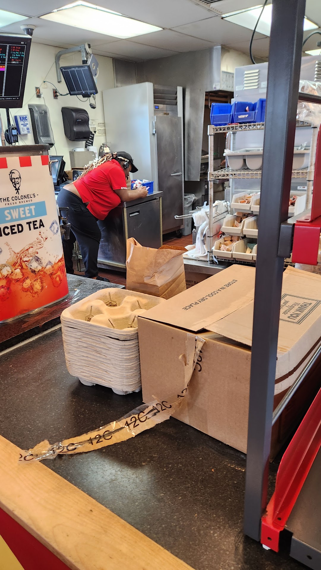 This is the worst KFC I have ever been to and I will never be back to this KFC store again. Guess they have nothing better to do than sit over and play with their phone while customers just watch them on their phone, at least the drive thru employee. The store was not busy at all and makes me wonder why, but now I understand based on my latest experience there. I recommend visiting another KFC, unless you want to potentially receive your order incorrectly or feel like you are bothering the employees, then visit...