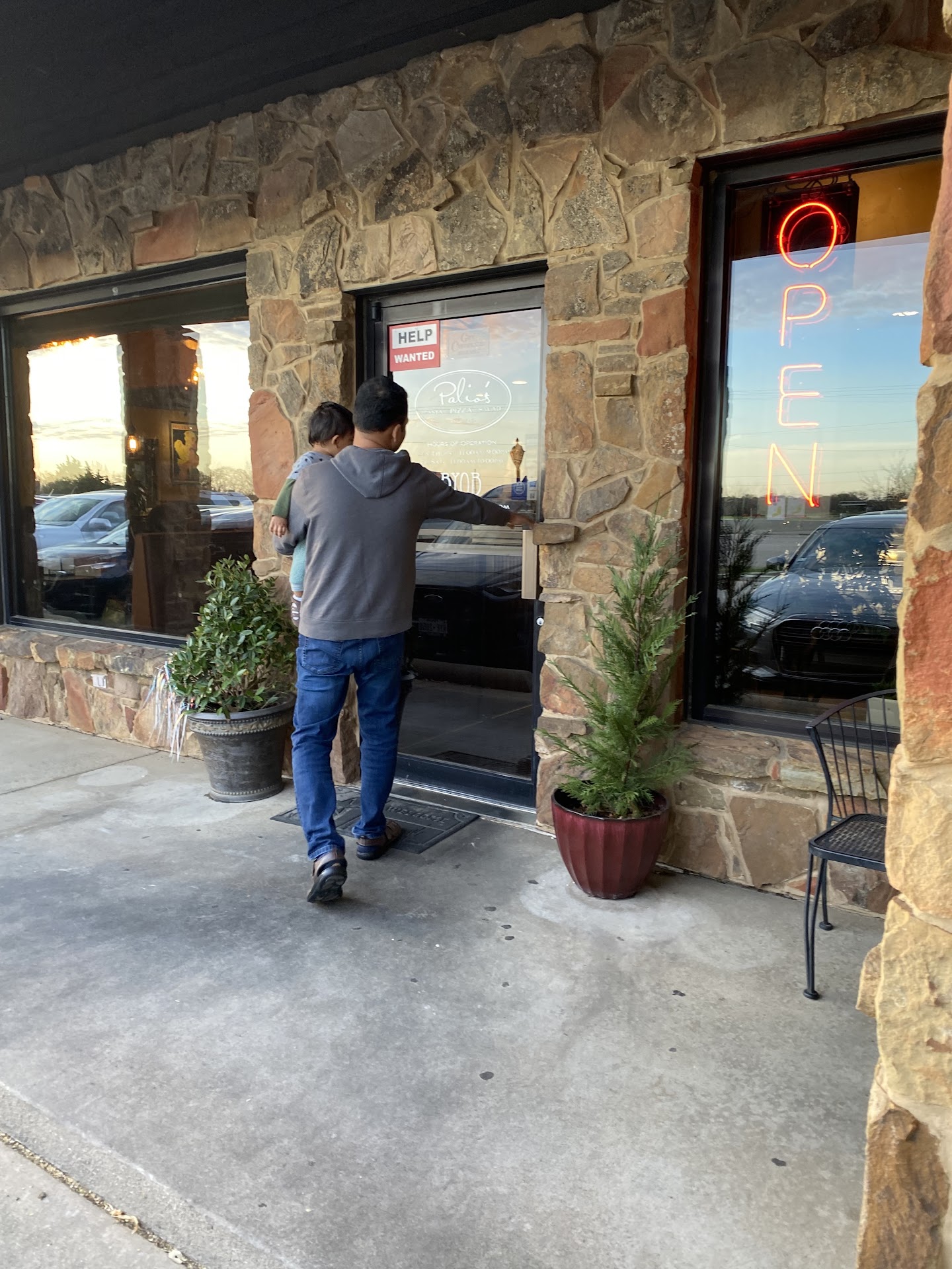 Read moreMy family and I were a little disappointed with this location. Palio's Pizza brand should serve same quality product, no matter where it is located. We ordered dine-in and take-out. From the beginning, the customer service was not great. The lady who took our order did not seem knowledgeable about the products Palio's Pizza Cafe offers and serves. When we got our pizza, it looked greasy. We ordered Noah's and Scorcher. The Noah's had minimum of ingredients that were covered with pretty greasy layer of cheese. In contrast, the Scorcher had an abundance of really big chunks of jalapeno peppers on it and barely any other ingredients. Later on, we asked to change our take out pizza. One of the employees, probably the supervisor, assured to change our take-out pizza, although it was already made. At the beginning, I thought about giving this location two stars. However, they did a god job on our take-out order. My only suggestion to the management is to provide better training...