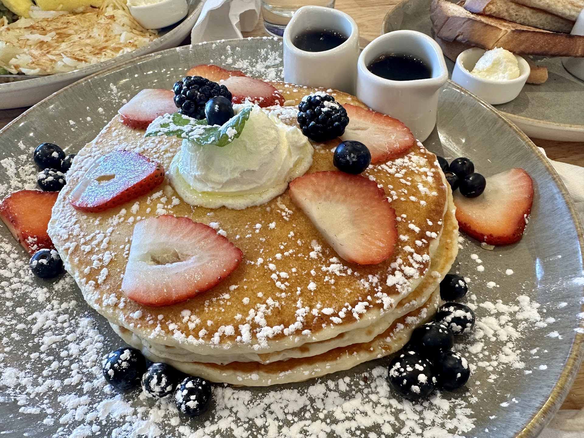 Read moreThe spot has been burned for me. So sad, had high hopes after the first experience but the second time around was devastating. If it wasn't one thing it was another. HYGIENE control is super important, unfortunately it was sorely lacking in our second visit - not more than a week later. That's how good it was first time around. Minus the noise and loud atmosphere, their dish skillets were delicious. BUT my stomach couldn't take seeing so many red flags. First I found a little visitor (bug) in my glass of water, then I we noticed our coffee cups had lipstick residue and debris in them. Got them switched out, no biggie. We received our dishes, and as I'm enjoying my meal I noticed my fruit bowl looked like it had been sitting in the fridge opened for more than a few hours but i ate a few and sadly my taste buds confirmed that weird fridge flavor... Then the meat was cooked so well done it was tough, but whatever i continued to try to enjoy what was so promising last week. But as i ate I found a hair in my food....I had to get that switched out too.... As I see my partner enjoy their meal mine takes time and comes back naturally..... I'm eating trying to finish breakfast in a positive light. Our meals were being covered after so many issues. But my god didn't want me to stick around I guess because I found a tiny piece of plastic and an eye lash. I couldn't believe it. I left. Didn't eat more than the toast and half of a very delicious waffle shared with my partner. But after I found another foreign object in my food, I...