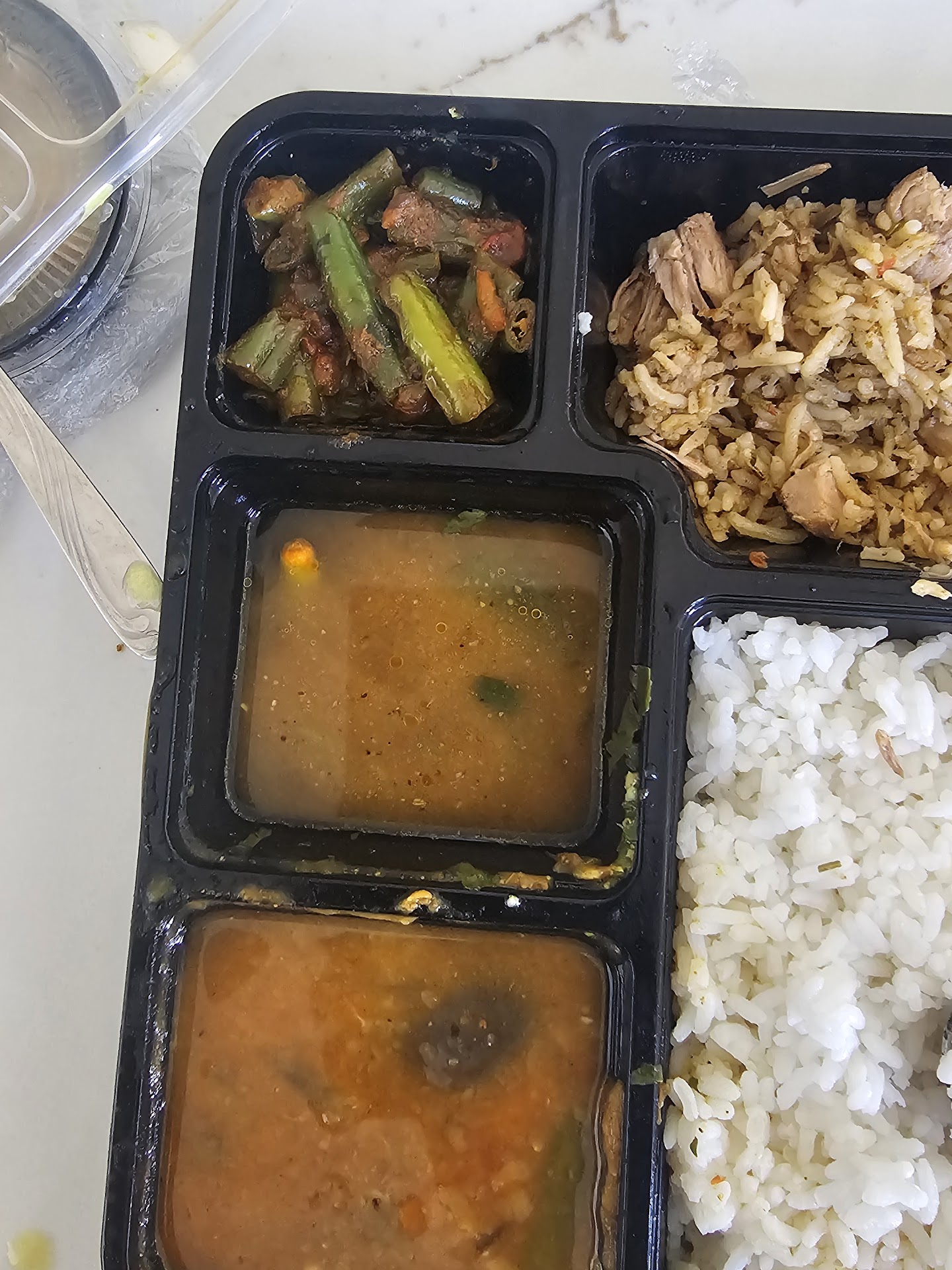 The Costco plates could be higher quality for sure. Our extra plates almost disintegrated by the time we finished eating. The main items came with a banana leaf to save us. Definitely suggest having better cutlery and plates for those who are going to dine in.
