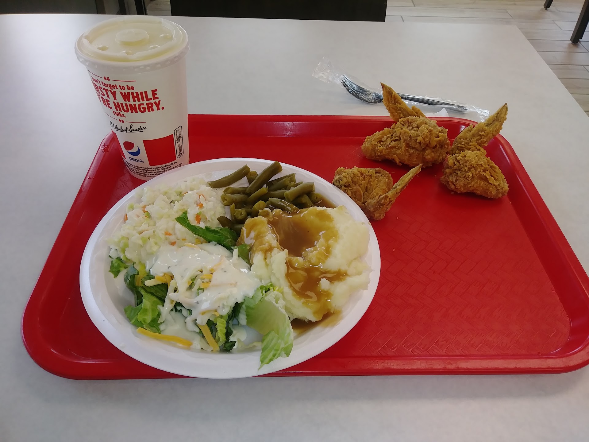 Read moresince the recent remodel the buffet is very limited ! not even lettuce ! much smaller than before and less selection than other kfc's that i visit. great chicken pot pies tho ! not many people there but the garbages were overflowing onto the floor ! they stopped making fresh cookies and had pre packaged cookies that were not nearly as good. but nice people at the counter ! dirty tables. HERE I AM AGAIN A COUPLE YEARS LATER, MAYBE LESS, 9-2020, KEVIN AND " MISS DOBLE " WERE SO NICE AT THE CHECK OUT, AND I HAVE TO TELL YOU, LATELY EVERY TIME I STOP IN THEY ARE SO FRIENDLY AND HELPFUL ! GREAT PEOPLE AND BEING APPRECIATED GOES A LONG WAYS WITH ME, AND THEY SURE HAVE DEVELOPED THAT AREA OF THEIR BUSINESS ! RAISING FROM 2...