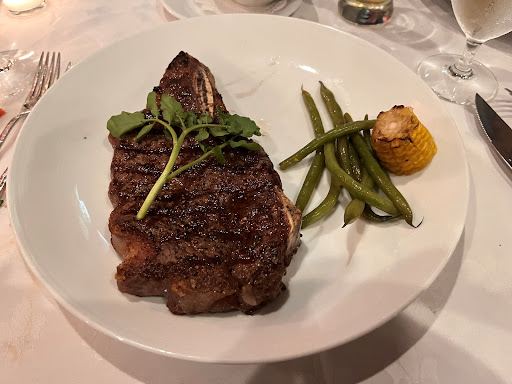 Read moreA well maintained restaurant with an upbeat signage. Parking is a premium, and they reserve the actual parking area for valet only, even on empty nights, one must park down the street, even the handicap parking is reserved for the valet. A beautiful interior where you first enter the bar area and walk through to the main seating area greets you as you enter the front door. The Host was very quick, helpful and pleasant as were the entire staff. The menu was very diversified, but overly priced for the given fare compared to either Arthurs, or Steve's Sizzling Steaks which are close to half the price, and the portion sizes were mediocre at best in comparison. I ordered the 14oz Prime which came with corn and string beans. We received some bread and dips for the three of us. There was 1 pretzel stick and 2 slices of warm brown bread with 2 small serving cups with butter and a dip. We also received 3 pieces of bread wafers with bruschetta on them that was slightly frozen and soggy. We ordered drinks, which were quickly filled and upon delivery of our dinner I received a very nice looking steak with a garnishing of 6 small string beans, and a tiny 1 inch cut off an ear of corn, both enough for a mouthful. The steak was cooked perfectly, as were the veggies. Unfortunately the cut of this particular steak was tough, with plenty of hard grizzle to chew through, and lots of bone that one need to pick out of the teeth. Even though I had to leave a third of the steak as too hard to cut or chew, the flavor was very, very good! My companions both had the Filet Mignon and while one was satisfied overall, the other said they too were disappointed. The atmosphere was very relaxing when we first arrived as there were only 5 other tables of 2-4 people. By the time we ordered only one other group had come in, but the place became an echo chamber once the new group raised their voices, prompting everyone else to do so. One had difficultly NOT hearing the conversation from across the room, and NOT being able to hear the person sitting in front of you. The layout is much like a VFW Hall or American Foreign Legion with a room for the bar with a couple wall tables and then one large room...