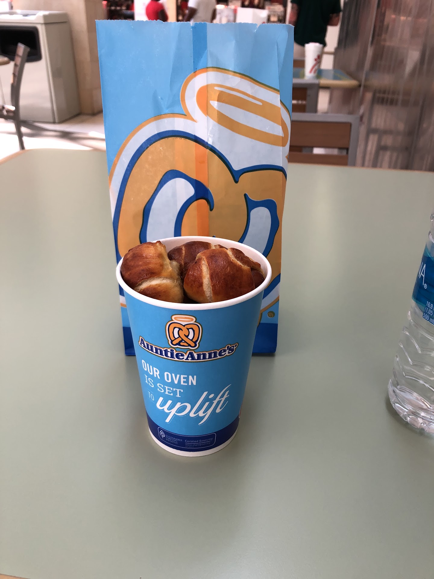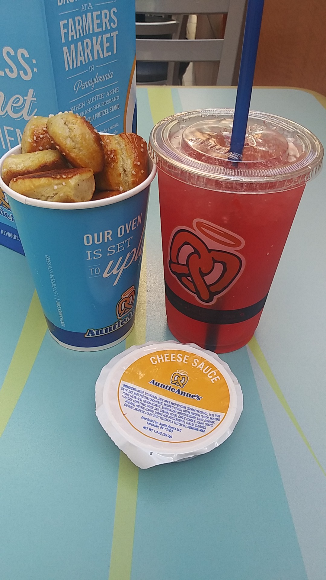 Read moreMy mother stopped by this establishment yesterday for pretzel nuggets and a lemonade. The girl with the orange/redish hair was very friendly but the boy working the counter has an horrible attitude. He told my mom that they were out of the pretzel nuggets and we preceded to leave then the lady said “I am about to drop fresh one’s, I just told him that” yet the message wasn’t relayed to us. Overall, 1/5, the young man had the worst attitude I’ve ever seen in...
