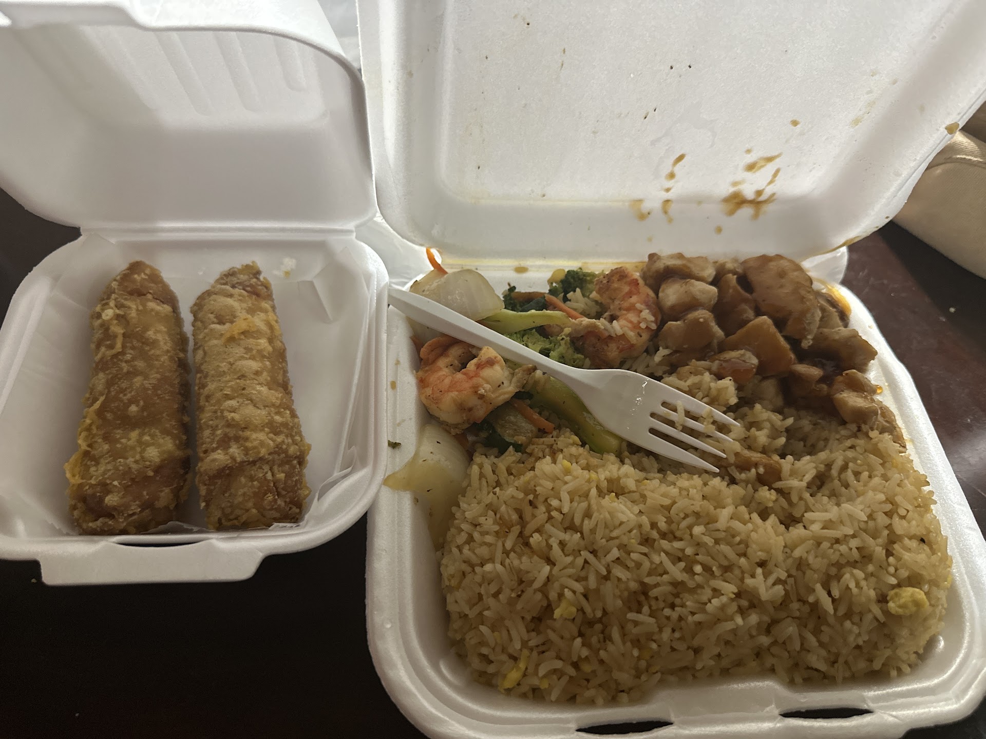 Read moreThe food was hot. Our order was incorrect. We paid $21.15 for chicken and shrimp. We specifically called and asked for chicken, shrimp, and an extra side of grilled vegetables. We got the chicken and shrimp but got a side of eggrolls instead of veggies. Someone picked up our order for us. When we got the order and I called to inform them that our order was only missing the side of grilled vegetables, the lady on the phone stated basically it wasnât her fault that the order was incorrect and wanted us to pay more money for a side of vegetables. Again, the food was hot but it wasnât that good for all the hassle. Donât waste your time. Iâm sure there is better hibachi and...