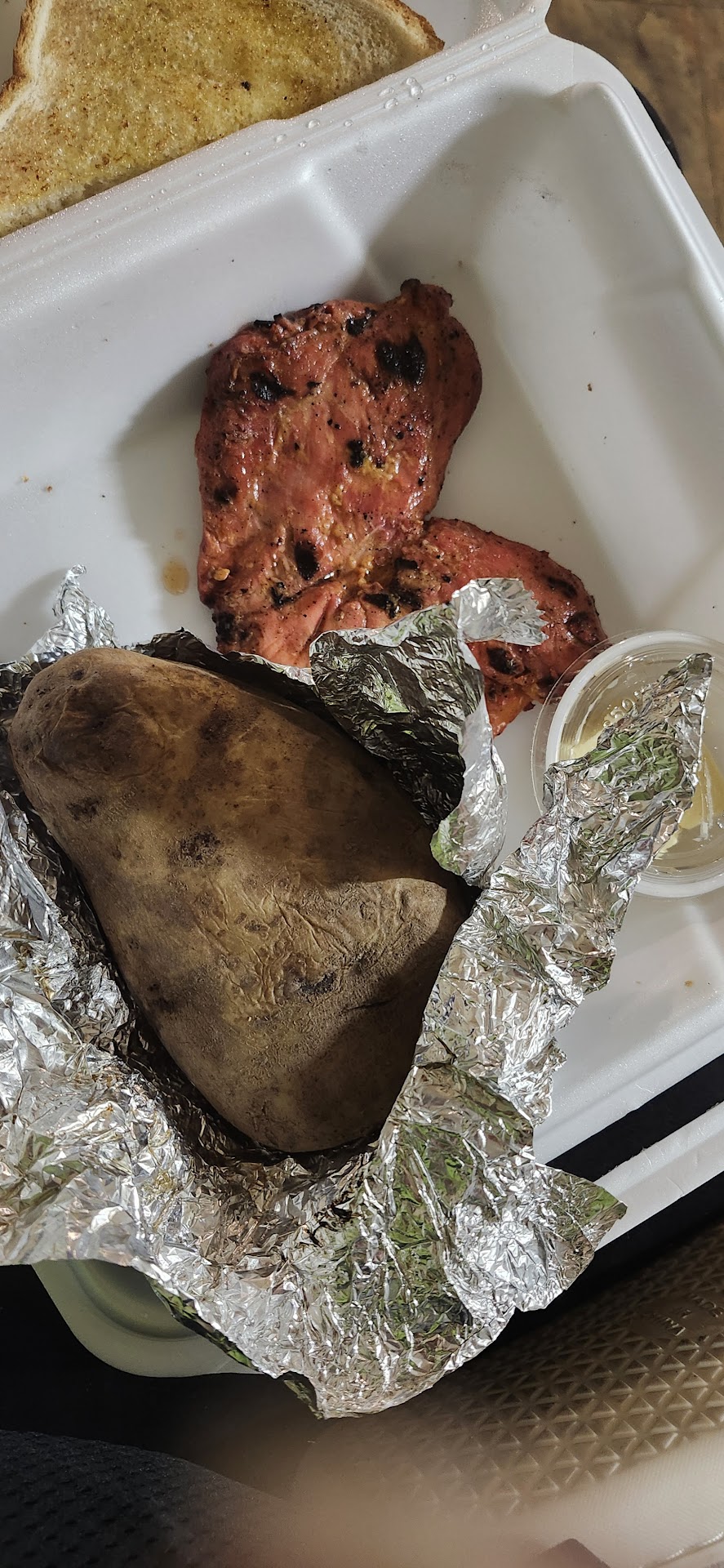 Read moreWe ordered through the drive thru. I got the bacon cheddar cheeseburger combo with onion rings and my bf got the double mushroom swiss cheeseburger combo with okra. We also ordered a peach cobbler to share. The total was around $34.00. Pretty steep but okay, maybe the food justifies that price but that wasn't the case at all. My cheeseburger had a patty that was too small for the bun, so it had way too much bread. The patty itself was very thin and very dry. The whole burger ate dry. The bacon was not hot or crispy. It was cold and flabby. The bun had been smashed, like it had been flattened. The cheese was nonexistent. If there was some on it, I couldn't tell. My bf had the same complaints for his double mushroom cheeseburger. I will say the onion rings were outstanding. Fresh, crunchy, well-seasoned. The same for the okra. Finally, the peach cobbler was inedible. The pastry was raw and grainy, and the peaches were swimming in water. It was very unpleasant. Maybe if the burgers had been more substantial but they were so small and dry that it did not justify the price. I think my combo was $10.99 and my bf's was about $15. The cobbler was around $5. It was too expensive for what we got. And for a place that chargrills its burgers, there was no discernable...