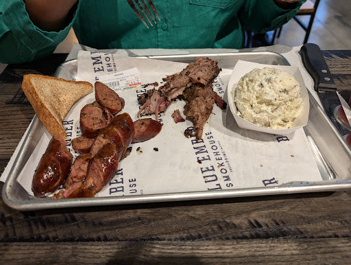 ย ย ย Read moreI was super excited to see that we were getting a new BBQ spot nearby. The first time my wife and I went was for opening weekend. Unfortunately, something I ate there made me very sick shortly after. ๐คข We think it was the coleslaw, which seems to have come from a can; itโs not fresh. I still gave this establishments a second chance by returning there a few weeks laterโฆ I went for lunch to get some chicken and turkey, but their truck had not delivered, so I chose ribs. For $18, I received a very modest portion of fried okra, a fountain drink, and three unusually small ๐ค yet mostly fatty ribs that were portioned from a small rack of I don't know ๐คทโโ๏ธ , and then the protein was weighed on their super special calibrated meat scale, (God forbid your portion of 1/3rd rack of ribs exceeds being overweight by 1 gram), ๐คฆโโ๏ธensuring exacting and precise weight of the protein before it hits the biodegradable - and hopefully digestible paper barrier on your food tray. You will eat that paper. ๐ซต I donโt foresee this establishment surviving one year just based on the lack of value alone vs. your hard-earned dollars being handed over. For now, I will stay the course with Whole Hogg BBQ and Wrights BBQ for the outstanding flavor, generous enough portions, and overall exceptional quality. Hopefully Blue Ember can realign and become something great. Thatโs actually what weโd really like...