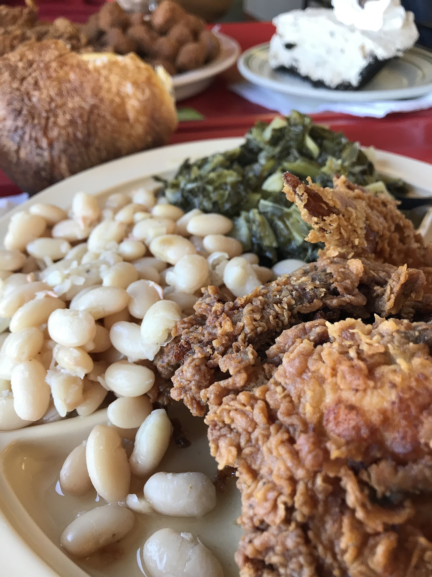 I really wanted to like this place⌠I havenât found a lot of cafeteria style places in this area and I always love the nostalgia of it. I was happy to try new fried okra and chicken fried steak but both of them were overdone and disappointing. The cornbread was so dry, very crumbly that you could not even put butter on it without it just breaking apart and not in a good way. The cabbage was the best thing that I had and stewed cabbage is very hard to mess up! Even the sweet tea ran out before I filled my 1st cup and then I was told there was more in the other one as she pointed to the Unsweet tea.