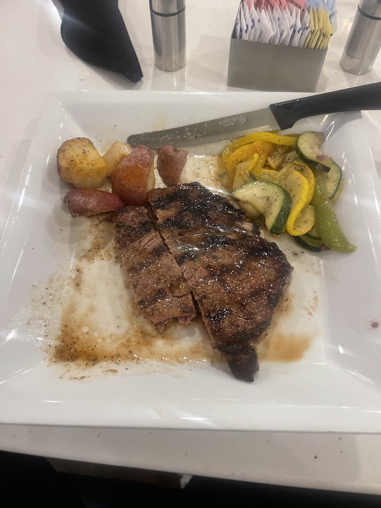 Read moreDreadful dining experience. I don’t know why I keep giving hotel restaurants chances. I ordered steak & frites, medium temp, which is a simple dish and simple cut of meat to cook. However, the steak was cut into chunks prior to cooking and appeared to have been boiled or fried. There were absolutely no visible traces of the steak touching a grill or cooking surface. The meat was just gray and still rare and cold at the center. There was no seasoning on it other than a sauce. I sent it back asking if they boiled their steaks. They took it away saying they would upgrade the steak. While this was a nice gesture, it takes longer to cook a filet than a flat iron. I was not surprised when they brought another series of gray, unseasoned chunks of filet with no cooking marks that was medium rare at best, but mostly rare and cold. They comped it and I left disgusted instead of full. Just get something that’s almost impossible to mess up like something fried...
