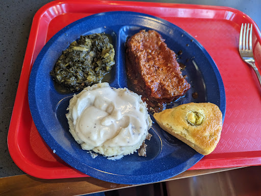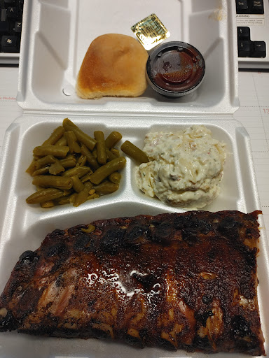 Read moreOk, so I had lunch from here twice to get a somewhat balanced review. On the first visit I had the smoked chicken leg quarter with green beans, mac-n-cheese and corn bread. Everything was excellent except the corn bread which was just bland, like not much actual corn flavor. Then today I had the half slab rib plate with green beans, baked potato salad and a roll (yep, skipped the corn bread). The green beans and roll were good but the tater salad was just ok. I'm not a massive fan of the dish but I've had better at other places. Which leaves the ribs and they're kind of a mixed bag. There wasn't much of a rub on them so you really need the sauce. I chose the mild sauce and honestly it's not bad. Could've used a bit more actually. They were cooked well but were also a bit on the tough side. Definitely not fall off the bone style. I don't think I would order them again but perhaps I'll try the brisket next time. The server both times was friendly and helpful. Most definitely a cool...