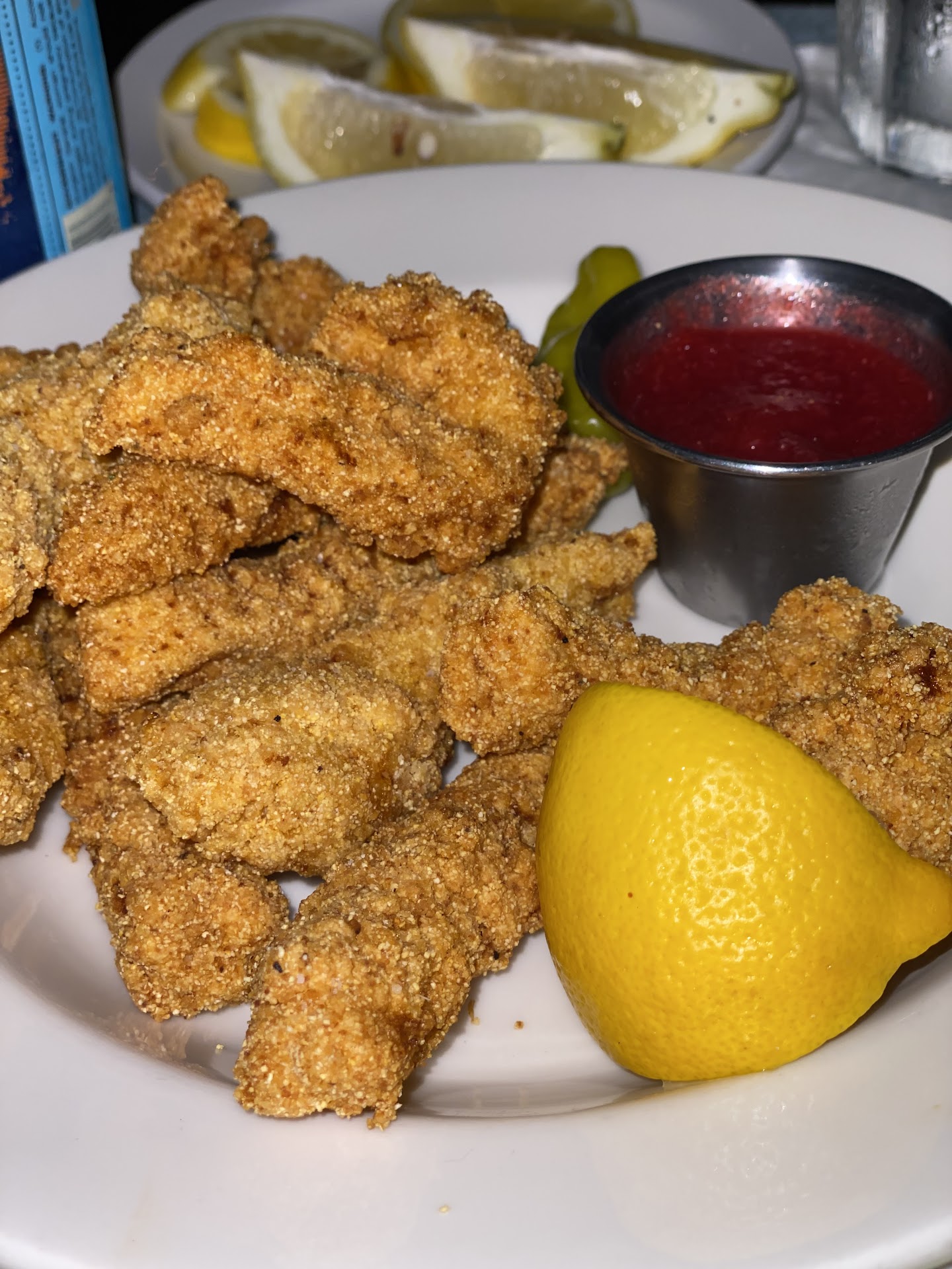 I was seated promptly by the hostess at a table in the corner, which was what I preferred. I was promptly bought water, as well as an alcoholic beverage. My first course was the Jalapeno Tots, which were wonderful and came highly recommended.