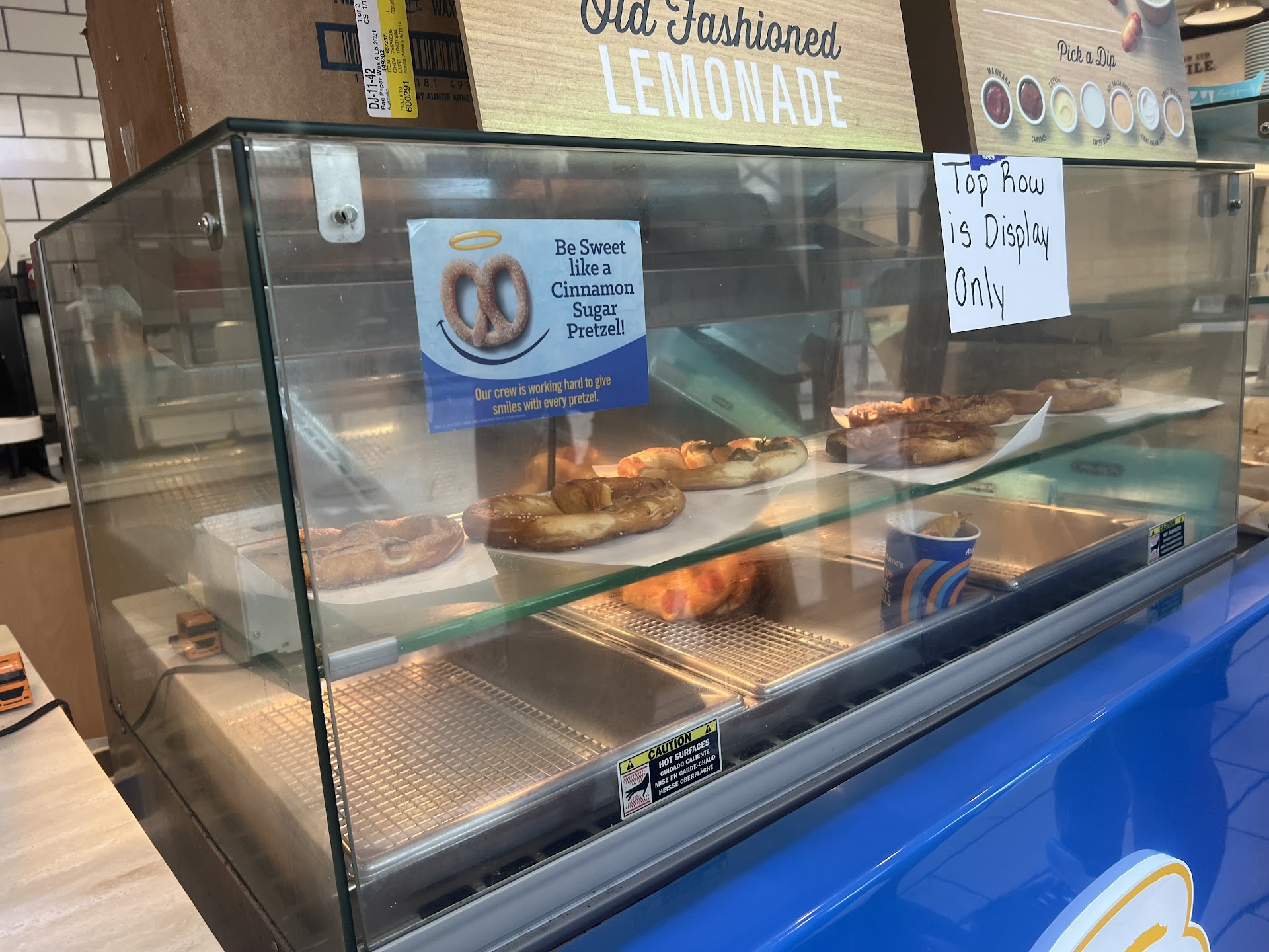 So so sad…. This place just keeps going down, down, down. There are never any to-go packs made up, very few in the case, & all surfaces look nasty. By expansion, same issue with the auntie Anne’s pretzels. Staff is typically rude, dismissive, and apparently pretty lazy based on how disgusting everything looks. Drink machines look sticky, need to be wiped down. Have not seen an employee actually making food in ages; they keep a couple misshapen/nonstandard rolls in the case but typically just the large classic size. Anytime I’ve asked about getting a minibon pack or even just a couple, have been told they don’t have any & are done making them up for the day: that’s the response whether it’s noon, 4, anytime of day. Apparently the management /owner feels that not having leftovers is more important than having product to serve. Noticed today the young lady making a pretzel for someone was using her ungloved hands to poke & flip it. & that’s just ONE pretzel: there were no bites, dogs or anything other than 1 more pretzel in the case that were available to buy (a sign stated that everything on the top shelf was for display only?!). When I asked about getting a small of the mini-dogs, was told I’d have to wait 15-20 minutes. 2 people actually left after waiting in the ridiculous line (no other staff offers to help, they’re just walking around &/or visiting) after being told that nothing they wanted would be available anytime soon. That entire outlet mall was about a decade late & you can tell, as it’s about half empty already. I’d imagine this single freestanding Cinnabon in Central AR won’t be around much longer - can’t make money if you don’t provide product to sell - pretty logical to me 🤷🏻♀️ As mentioned above it’s really sad as I’m not the only person I’m sure that enjoy those perfect, sinful, sticky buns. Just sad.