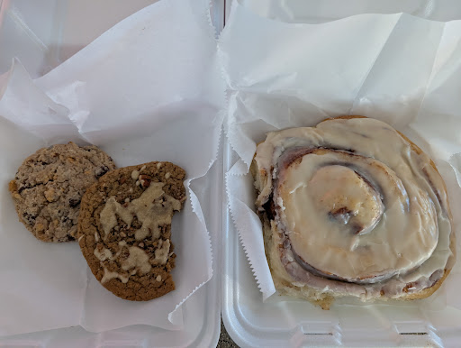 Read moreOh my gosh 🤯 to start, everything looks amazing. I was told to try their cinnamon rolls. But they aren’t just a typical cinnamon roll, they’re as big as your face! How much are the cinnamon rolls? You know, I’m not certain... BECAUSE THEY GAVE IT TO ME FOR FREE!! All because I’ve never been there before. That’s how confident they are that you’ll be back. I do have a warning though, do not go to this establishment if you are dieting or attempting to watch your weight. You will watch it go higher and higher I promise you. “Diet, what diet? I’ll have one of everything!” I also got a slice of cheesecake... it too was amazing 🤤. No, I didn’t eat the whole cinnamon roll AND the cheesecake in one sitting. Heck, I didn’t even finish them in one day! I still have a third of the cheesecake and most of the cinnamon roll waiting patiently for me to finish them off tomorrow. Now that’s going to make for some...
