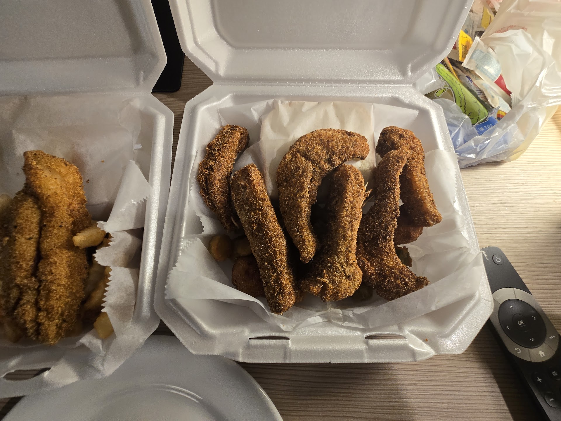 Read moreI have always loved catfish tails, so I was really excited to read the reviews of The Fish Market. I made arrangements to meet two of my best friends here. My friends ordered the fillets and said they were wonderful. I ordered a large order of catfish tails and buffalo ribs. My friend's fillets were wonderful, golden brown, and very tasty. My buffalo ribs were golden brown and very tasty. The catfish tails I received looked nothing like my friend's fillets. They weren't fully breaded, were overcooked, and much of the meat had been exposed to the frying oil and were brown, very greasy, and inedible. This was so disappointing. I ate two of the tails and threw the rest in the trash. It distresses me to post such a negative review of a highly rated, locally owned business, but I am still having ill effects of the greasy, overcooked...