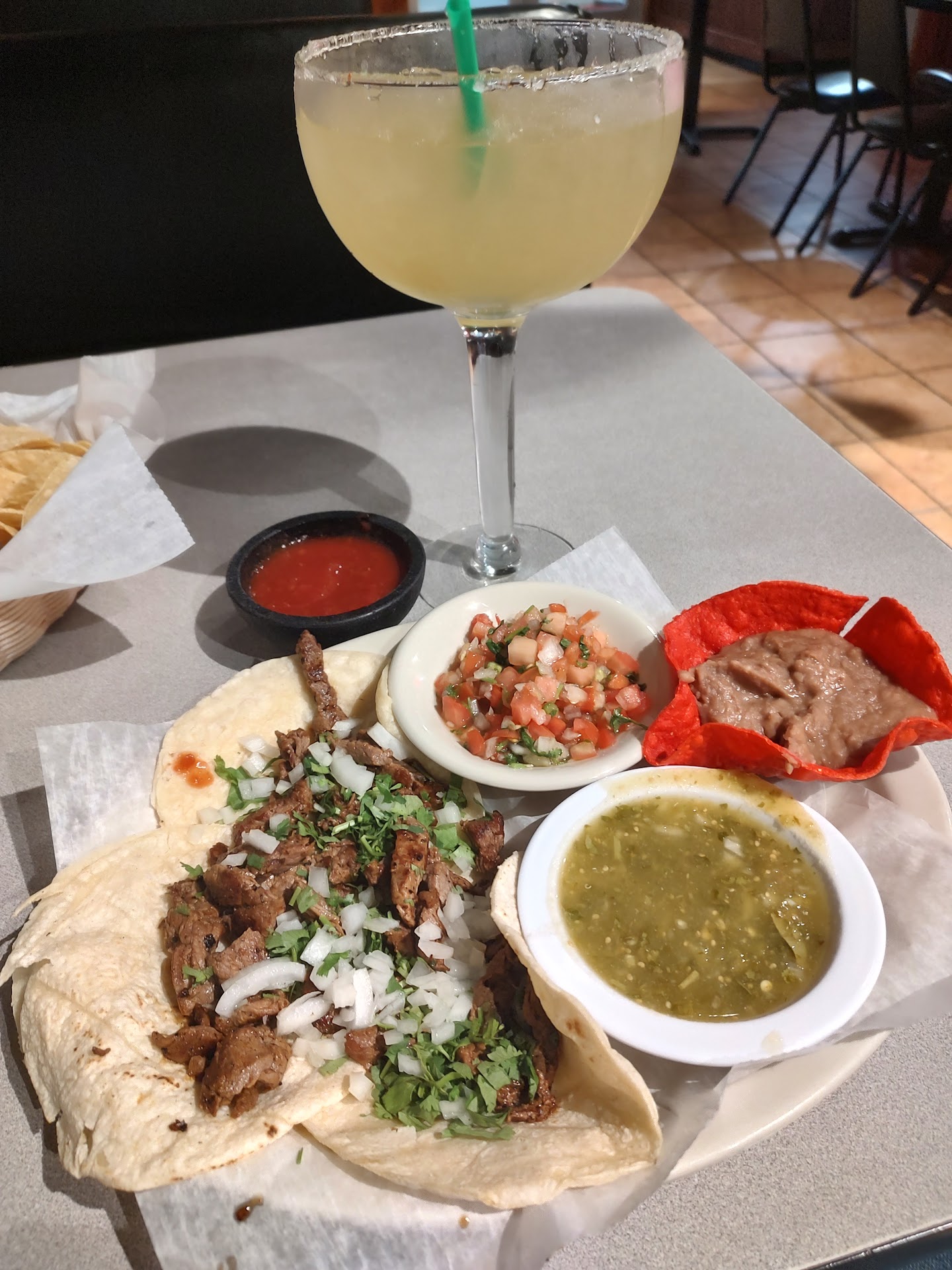 Read moreWent there for my birthday and got a fried ice cream dessert for free and a couple of guys decided to sing and clap for me which was very nice. However the rest of the experience was pretty tough, as the chips and salsa were very bland and the chips had been held for a long time and had no flavor besides kind of a stale roast. My wife and I both got the lunch fajita and we immediately remarked that it looked very light in color for the skillet portion of the fajita where we thought it was just very fresh from the grill it turns out it just had not been seasoned hardly at all it tasted like fresh ingredients but it felt like it had no seasoning. No salt to be seen anywhere, no slice of lime was going to save this meal. I added salt and pepper to the meal and was surprised as it didn't really fill that lonely spice gap. That free ice cream really sealed the extra star on this review. Sorry guys, y'all were nice, but the food was...
