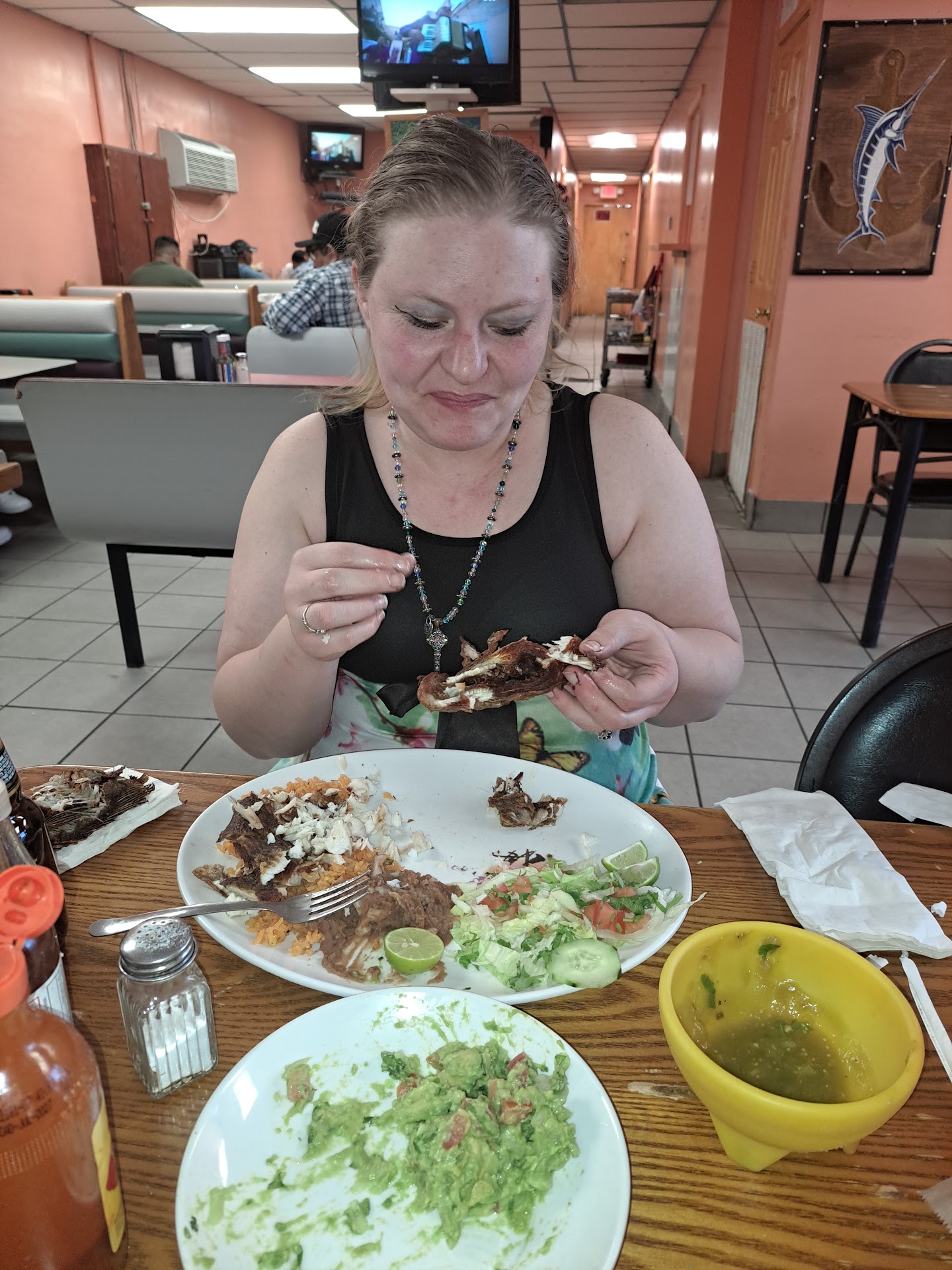 I have mixed feelings about this place. The place is nice very mexican style restaurant. So I guess no one speaks English. But that's okay because the menu is in english😀! I am more confident in reading Spanish than speaking or hearing it. So I spent over $111 in one sitting. Yes! I have kids and they love seafood! So I needed to buy 3 take home plates. It was busy a d the waitress was always saying she understood and walked away. It took an hour to get our food because the waitress never ordered it. So this is the negative thing. She gave me my food and I left with my kids. I got back and I was like here kids put you food up for later. That's when I realized one box was just tortillas..I'm missing a box of food. I go back and I explain. They felt I was lying. I wasnt. People that was there when I left were still there... they even said the lady asked for 3 different meals.and I still had the receipt. She said I must of ate the food there. No ma'am. If this was McDonalds I wouldn't have bothered but I just dropped over a 100 at your restaurant. I just want what I paid for. They call their boss and explain I'm making a fuss. I am not I am very respectful I even called my friend that speaks Spanish to interpret my problem. She ended up coming explaining that I am not a con artist. Long story short I got my missing meal. Moral off story. Check before leaving . Now the food. It was amazing. I mean they have this seafood soup that ...its awesome every dip of spoon comes out with something magical... it's a must for any fan of seafood and Mexican. I believe they are not trusting in other races. And that makes me sad and I understand due to being a black woman. I will continue going but I will just order order take out. Please eat...