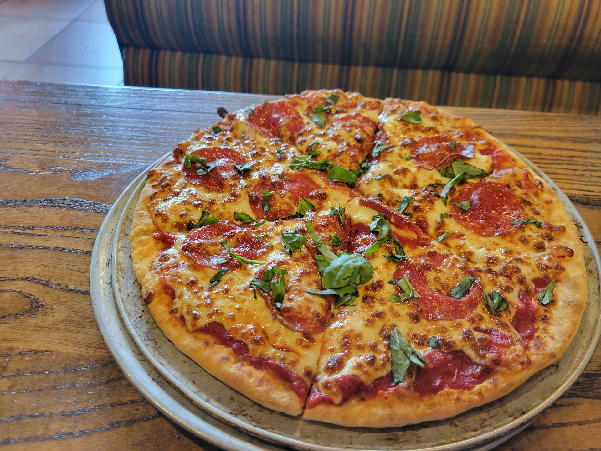My friend looked to enjoy her pizza, and after she was finished, she offered a slice for me to try. I was too full but that didn't stop me from grabbing an easily accessible self serve to go box to take away for later. Still good by the time I was able to reheat later for dinner! Crust is light and slightly chewy, and toppings are perfect with allowance for a bready finish. I don't know it the cheese is a blend or not, but it complimented the sauce well. Sauce isn't too sweet, and delivers a smooth, savory, and slightly tangy bite.