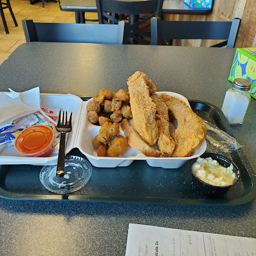 Ā Ā Ā Read moreThe cashier charged us for a water we didn't want but he didn't offer to take it off for us. The special said $7.99 but the charge on the slip was $8.99. We asked for a blue slushie and got a yellow slushie. So they like poured out 1/3 of the yellow one and put blue in it, so that was wrong also. So we were over charged 3$ in total. The food: the gizzard and hot sauce were so delicious. The wings and tenders were good. The Mac and cheese seemed soupy and not salty enough. French fries are good. The fried okra and 10 piece shrimp had no salt or Seasoning so those were bland unfortunately, dipping it in ranch did not help. They don't have free water here. Seating at tables available, ours was wobbly but it didn't break. Although it sounds like a mixed review, all our complaints would be easily fixable. They also have a drive through if your feeling tired lazy or just don't want to get out of the car. Very homely, slightly older inside seating arrangements. Just for the gizzards alone we would come back and spend money here. It's a ok place, we reccomend trying it...