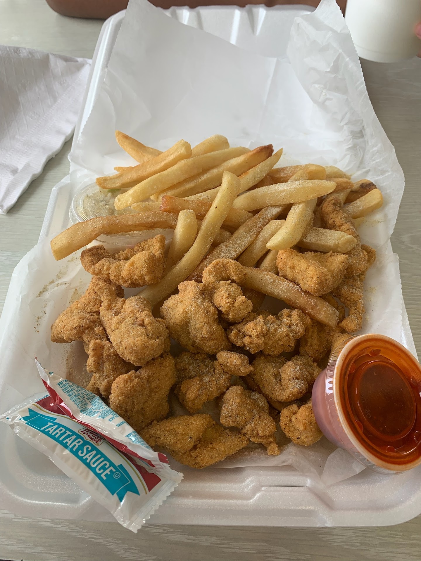 Battered fish sandwich, they tried really hard but the onions were old or something and just thinking about it makes me sick to my stomach. There was just something about it, recommend you keep them off. Would have been great otherwise. Staff is amazingly friendly and helpful. Haven't seen a fast food place with cooler employees in a really long time. Only reason I decided to come back, plus the french fries were out of this world and I don't even eat french fries like basically ever. But I tried one and ate them all. Very wide menu selection from seafood to Philly cheese steak sandwiches and fried okra. Left credit card there in drive through on second visit, because of this sliding window thing they have you don't realize it's there and busy doing other things. This being on the corner of Roosevelt and Broadway, and it being the last place I thought I would have left it, 48 hours later I went back and asked and there it was. They held on to it along with what he said were quite a few others just that day, and was just really cool about it. It made my night. Too bad our neighborhood kind of forces them to have that kind of drive-thru window, they can't like reach out and hand you the card back so it's easy to get distracted but it keeps them safe. The fried catfish very good, being fried it's nothing greasy like Captain D's or whatever. A very different experience but enjoyable. Only took one star off because of the fish sandwich, those onions i think gave me onion PTSD. I think I can smell them now, or the taste of them. Oh well, it may not be their fault, possibly supplier or just that particular onion. Anyway if you're doing fast food or downtown and need a place to eat that is open till I think midnight or at least 11 and want something different than burgers and a friendly fast experience,...