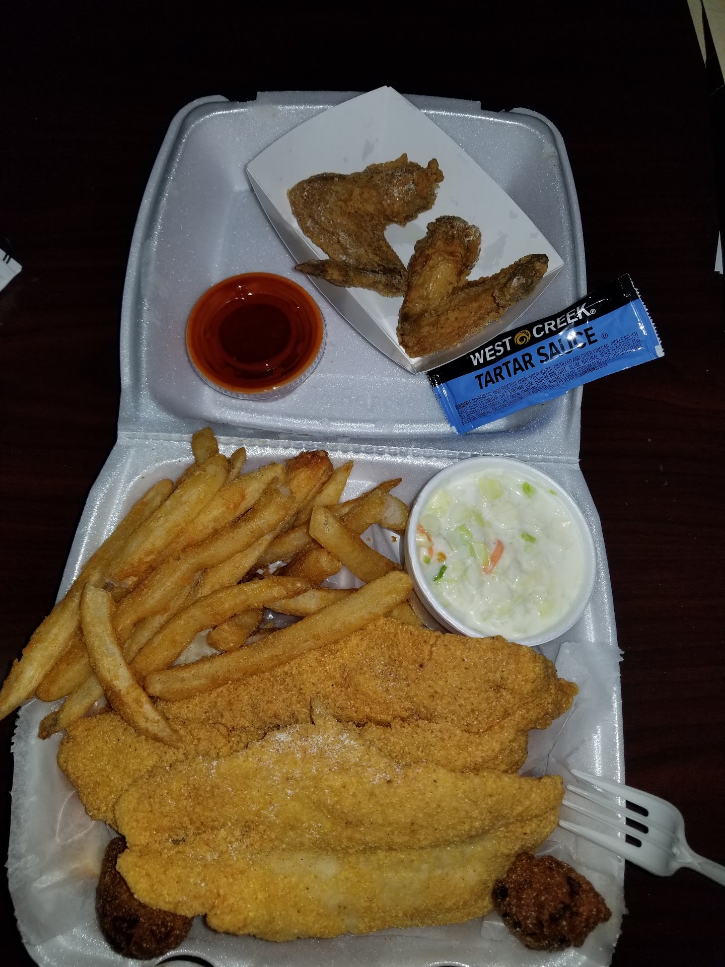 All of my food was OVER COOKED ! & OVER PRICED !! The cat fish was thin& rubbery...I don't even think it was cat fish! fries& hush puppies were Basically burnt to a crisp & When I asked questions about other items they just charged me for them as well when I didn't ask! This was a horrible experience @ shark's on geyer springs rd . & they know that their services are horrible! Because they have a hand written sign on the drive through that states "No EXCEPTIONS, NO REFUNDS " the customer service was terrible I also purchased the chicken & it was ok. Everything else was not edible! $20 Completely Wasted... & you can't even complain & ask for a refund! Hence the hand written notes on the...