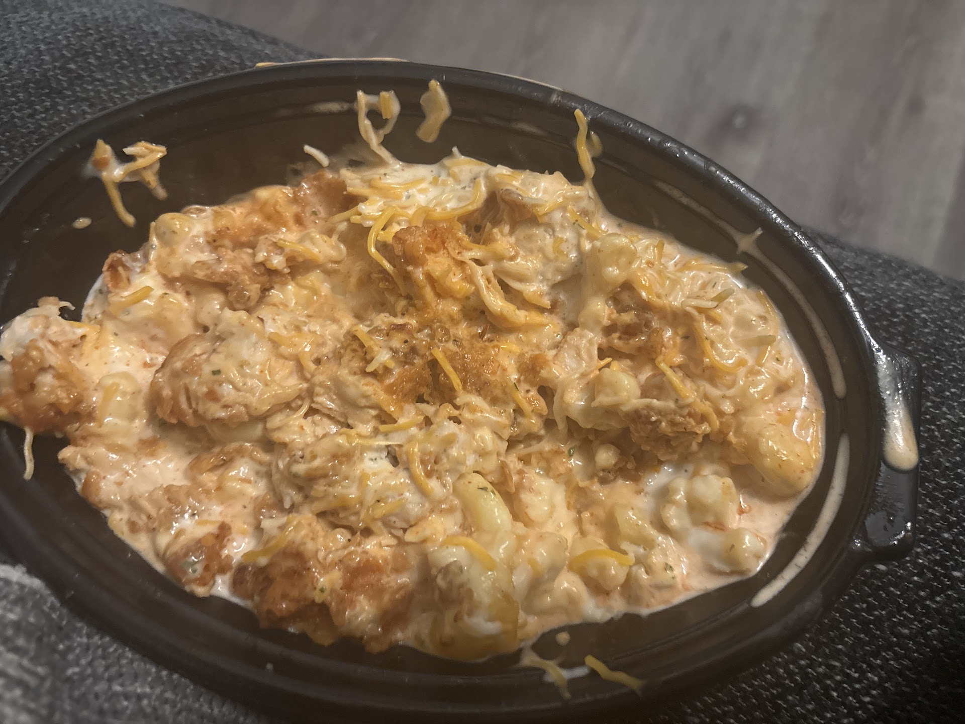 As for the meal itself, the flavor of the mac and cheese bowl was decent, but the noodles were noticeably overcooked and mushy. The chicken tenders had an odd, rubbery texture that made them pretty unappetizing. On top of that, the buffalo sauce wasn’t mixed in well at all—I only got spicy flavor in a few bites, and the rest was pretty bland.