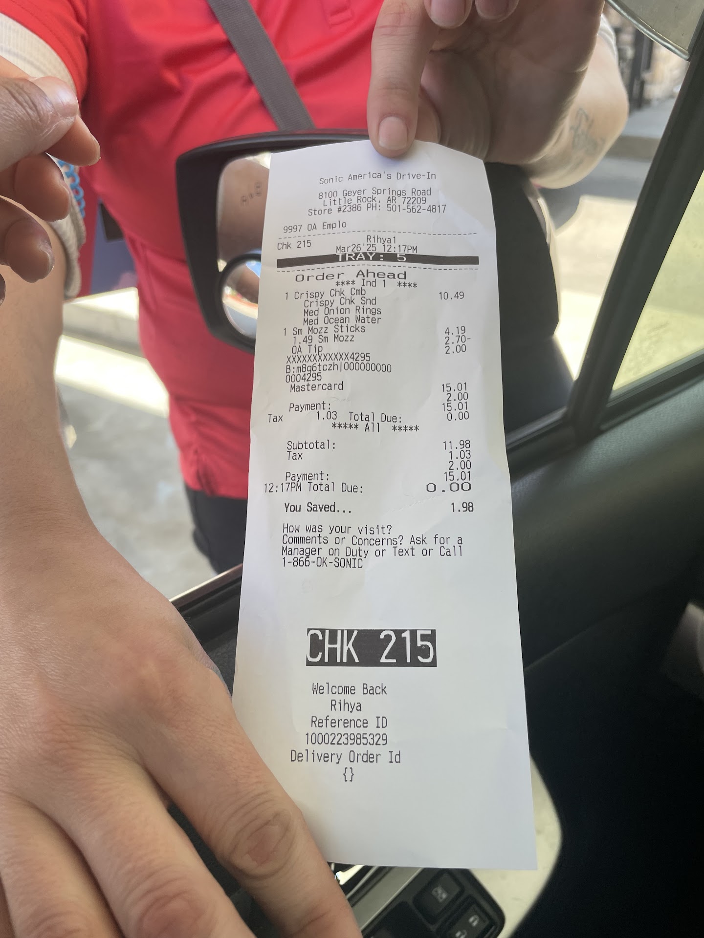 Iām sure this may be due to staff shortages. However, mornings should have at least 3 or 4 people, because thatās one of the busiest times of the day. Whenever Ms. Kayla does not work, the wait times are about 15 minutes AFTER you place your order in the drive thru. When you get to the window, there is still an additional wait for your order. The customer service (professionalism) is fine. Itās just when people have to be at work at 8, thereās one car behind you and only two cars ahead of you with each only having one order, things should operate a little smoother and faster. Iāve been to other Sonic restaurants where the person taking the orders would literally assist with getting orders to customers in an effort to speed things up. Ms. Kayla will literally bring your order to your vehicle and take payment, rather than have you waiting 15 minutes for ONE breakfast burrito or ONE toaster sandwich. I placed my usual order at 7:40 and received it at 7:57. The two cars ahead of me pulled off, due to the long wait. I had to be at work at 8. Luckily, this Sonic is very close to my job. I suggest either putting more employees on the 1st shift and possibly allowing them to work some additional time, so they can make more money, and customers can continue patronizing this Sonic and arrive to work on time. If I could give Ms. Kayla 5 stars, I would. She was not there today. If she had been, the wait would have been like 5 minutes or less. Please, keep her around. Again, good customer service (professionalism) in the mornings, but the teamwork needs to be strongly encouraged and enforced, so it is a win-win for everyone. I do not like leaving negative reviews. However, for me to do so, the experience must have been horrible and/or has become a pattern. In this case, it had become a pattern, and today was the time...