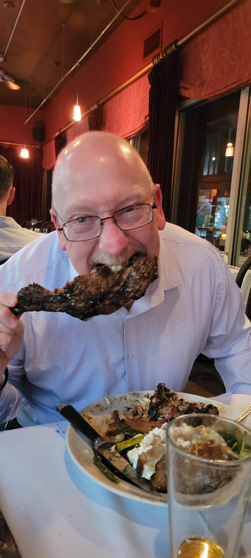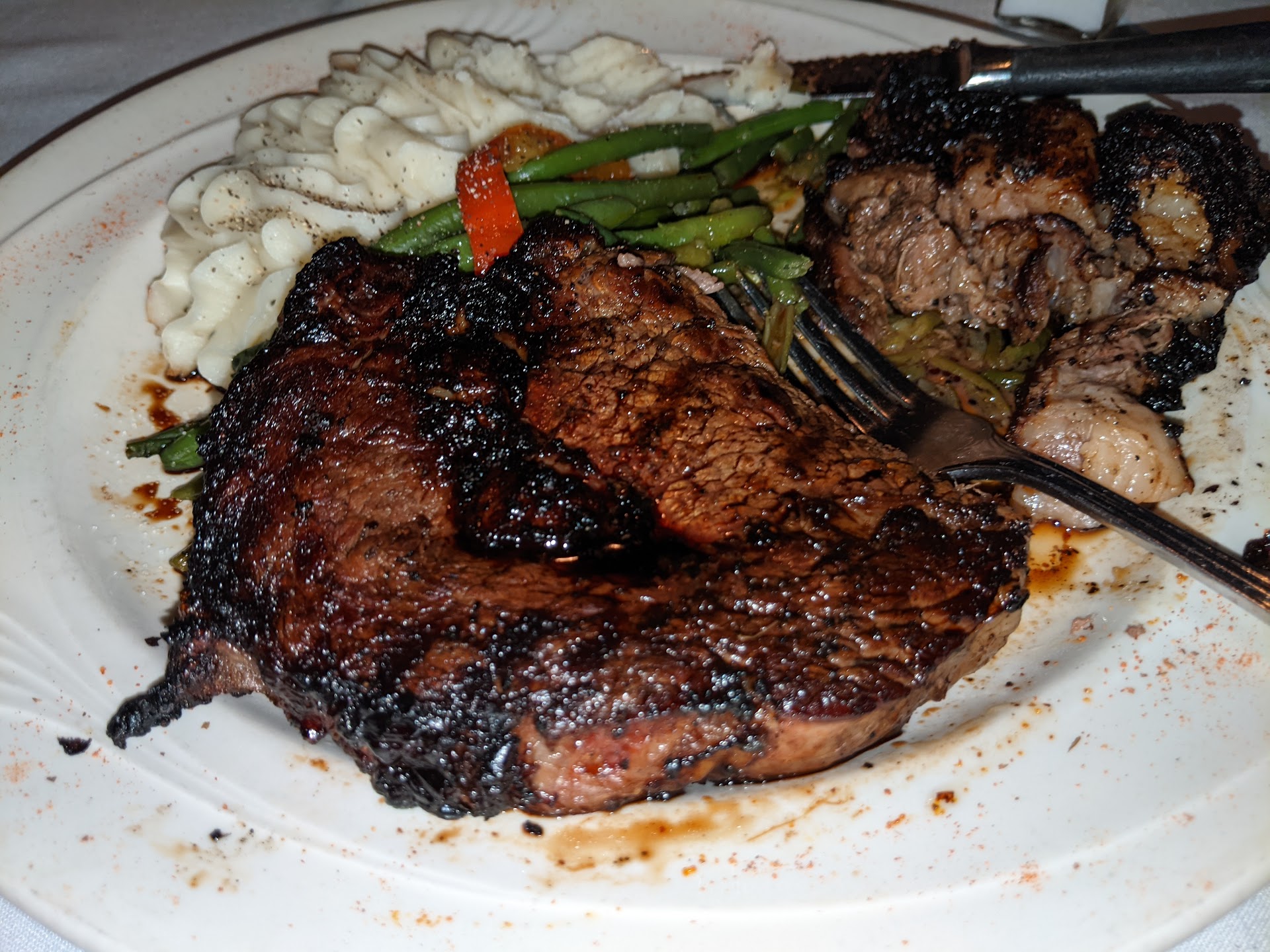 The food is always very good seasoned well but when the main protein is steak and it does not come the way you expect it to come from a steak house. It is disappointing. Our reservation was for 515 for four people and so it was not crowded and in hindsight, I would have expected, at least a suggestion to reduce or to modify the cost of the meal at least for those two persons whoâs food was returned three times. It was not as I said we had been there before, and never had any such problem. Our waiter on previous occasions was always very attentive to our waitress on this occasion did not seem to be as attentive as I would have expected so it is reasonable for me to assume that the waitress did not inform the management of the problems that we were having with our steaks I forgot to mention that the quality of the cowboy ribeye was totally different than what I had last year. It was a lot of gristle and a lot of fat this year. It was a Season well. With everything else going on with the steak and the temperature of the steaks for two of the diners it just never got mentioned. I donât think the crab edition for $15 on top of the steak is worth a crab is very bland. you donât even know that you have crab on top...