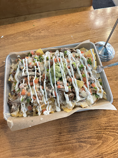 Cashier wasn't friendly she was prompt...I ordered the carnitas taco..it was good but very dry..u couldn't taste or see any sauce...it was mostly cabbage hardly any meat. Every table was dirty and the napkin holders were greasy and had built of grime on them..the plastic number she handed me was sticky, greasy n I put it down. I said that's really dirty..she says u have to have it .I was one of two people n the other customer was waiting for to go order. I ended up sitting at the to go order bar so I could put purse n shopping bag on the bench..at least it was clean..so I went to the drink station to get some hot sauce..the drink station was completely destroyed n filthy..coke syrup everywhere n other unknown liquids n trash n of course the hot sauce bottles were greasy n grimy..I used my sanitizer n way too many napkins...I didn't dare go in the restroom.. also the cashier kept coming over by me like she was watching me eat..she tried to look in my shopping bag? I was riding the bus so I brought a nice shopping bag to put my purchases in..And I was dressed Nice n neat n I never complained to her..but I almost did because she was watching me like a prison guard...it's obvious that I'm not one of the druggies faking being homeless n harassing people...in.facy I was harassed by one as I was walking over to get something to eat so I could take a aspirin....I didn't eat b4 I went to store so I started feeling bad n getting a headache....it was bad e enough to experience such a filthy place but for her to come all the way from behind the counter n watch me eat n whatever she was doing ....was just too much for me...I bought one taco to try because the menu was different than I expected n I would have bought some To go if I had liked it....there were 4 or 5 workers there n no one was cleaning anything they were all talking mostly...I was too tired n ready to get home to be real upset..but after I got home n told my neighbor what happened ..I was very insulted n regretted not taking my food back n saying it's too FILTHY...