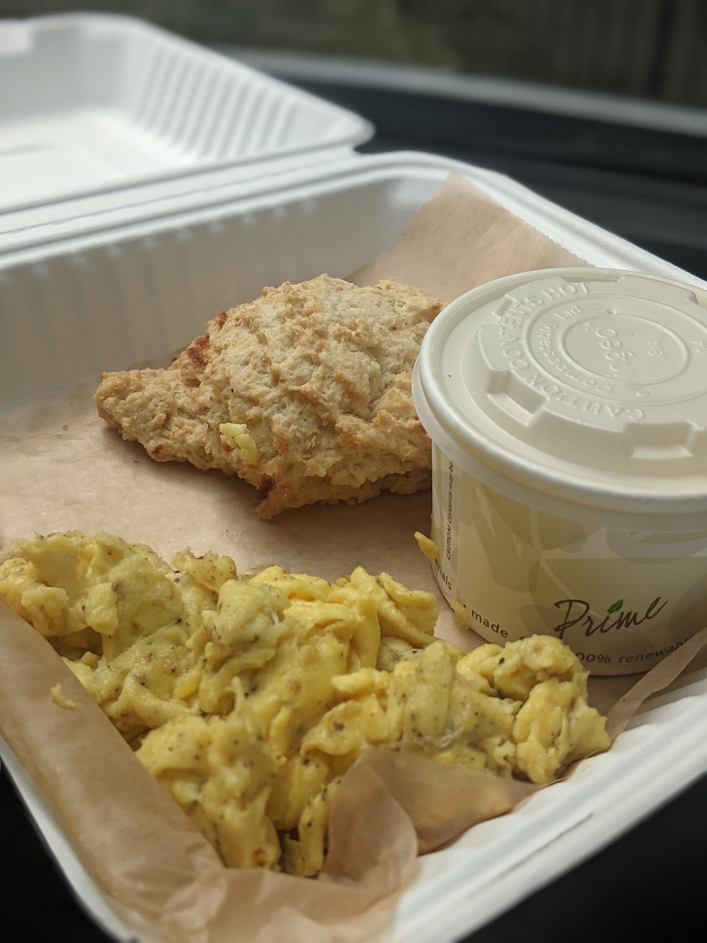 I ordered the eggs, and biscuits and gravy for one meal and the eggs, toast and sausage for the rest of my group. We both got scrambled eggs and they were unbearable to eat after the first bite. They tasted like a cup of salt. I couldn't even finish them after that bite. It was tongue curling. The biscuit was a basic biscuit taste.. nothing special but nothing too bad. It didn't taste fake or processed, it tasted like flour and water so that was good for the concept of minimal ingredients. The sausage had potential to be good, but tasted like pork covered in dirt. Perhaps there's an herb being used here that I'm not used to, but it was not tasty. The gravy was too runny and had a film of oil sitting on top.