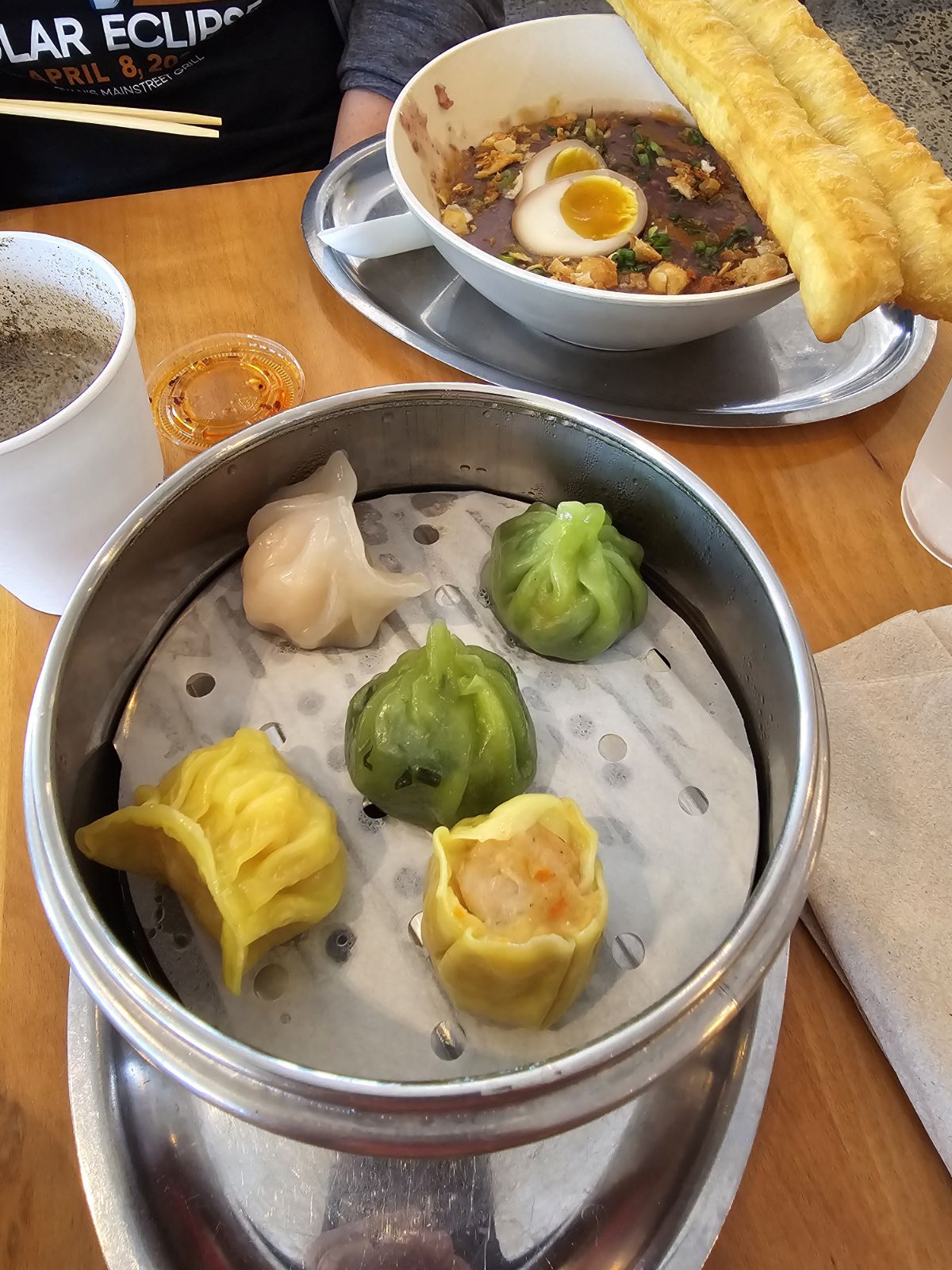 We've been several times now for dumplings and noodles which are incredible (the half and half with pork, and the beef noodle soup are standouts. And get the spicy dipping sauce!) But we went the other day for brunch, and y'all it was an experience! We got the dimsum set, the multi grain congee and the bing wrap. All fantastic! The dimsum were glorious little bites with something for everyone - the vegetable forward ones were light and delicate and perfect conduits for their spicy sauce, and the meatier bites were rich and packed with flavor. No notes. The star of the bing wrap is the scallion pancake, which really elevates it above a run of the mill breakfast burrito. And oh the congee - it's like oatmeal, grits and wild rice had a wonderful, savory, purple baby. There might be a slight texture issue for some, but if you like the flavors of oatmeal and/or mild wild rice then you will not regret ordering the congee. The black sesame and mala lattes were the perfect compliment to this fantastic meal. Can't wait to return and try the tea service and...